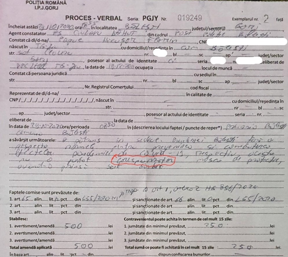 Amenda primită este de 500 de lei. În procesul verbal se menționează că alesul USR avea masca de protecție sub bărbie, motiv pentru care a primit sancțiunea respectivă.