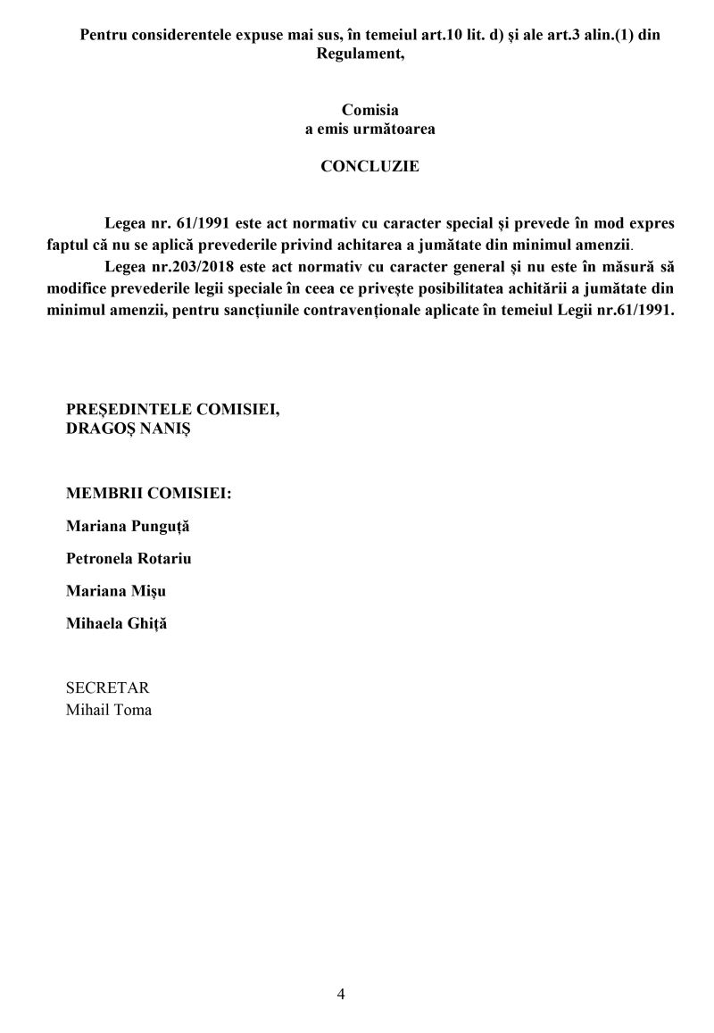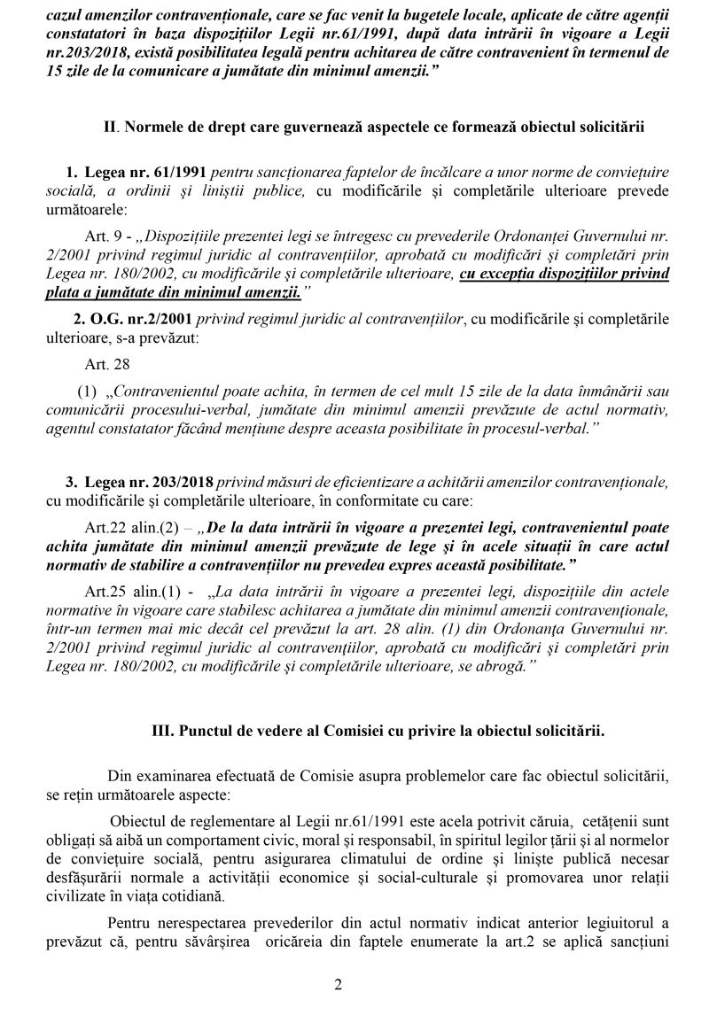 ,,Le-am adus la cunoștință celor din conducerea Poliției Locale Târgu-Jiu punctul de vedere al Curții de Conturi a României, acum câteva zile. Am postat chiar documentul pe grupul de Whats App, dar a fost ignorat. Asta deoarece am văzut acest punct de vedere al Curții de Conturi, dat pe 27 februarie, pe rețele de socializare, care subliniază expres pentru Legea 61/1991 că nu prevede achitarea a jumătate din minimul amenzii, fiind o lege specială.