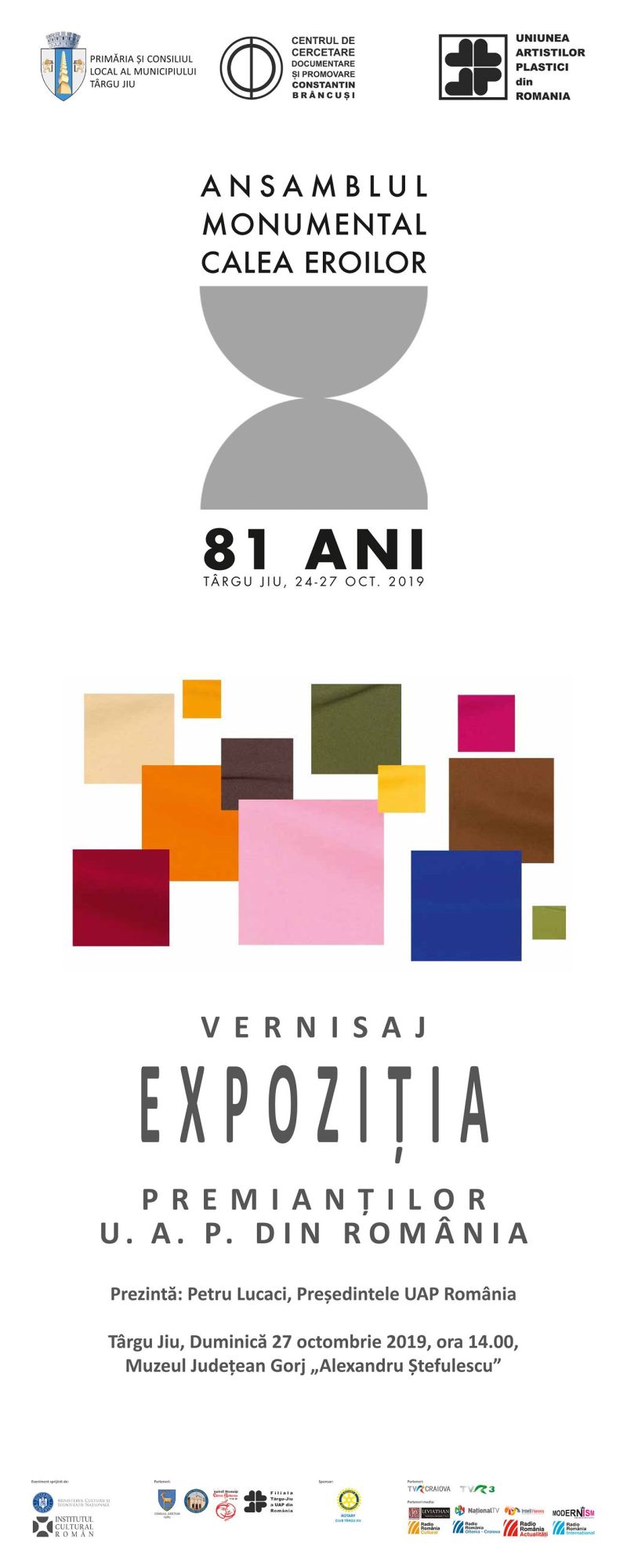 Ora 14.00: Vernisajul Expoziţiei Premianţilor Uniunii Artiştilor Plastici din România; Prezintă: Petru Lucaci, Preşedintele UAP România; Loc de desfăşurare: Muzeul Judeţean Gorj „Alexandru Ştefulescu”;