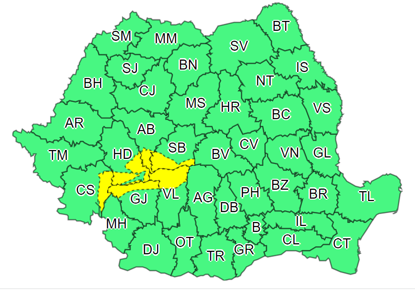 De asemenea, în intervalul 05 decembrie, ora 20 – 06 decembrie, ora 08, local în Carpații Meridionali, la altitudini de peste 1700 m va ninge, se va depune strat de zăpadă, iar vântul va avea intensificări cu viteze ce vor depăși la rafală 70…80 km/h, viscolind ninsoarea și spulberând zăpada.