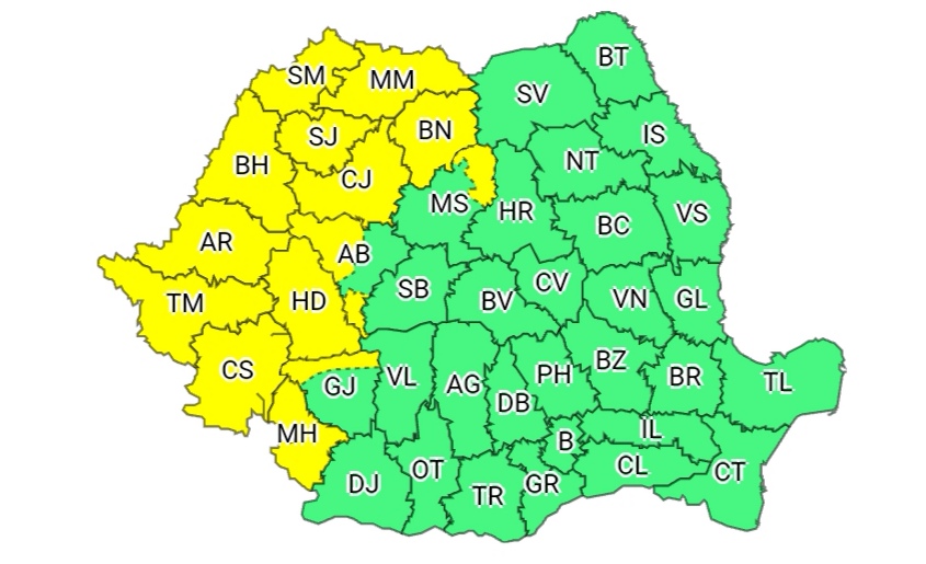 În intervalul menționat, în Banat, Crișana, Maramureș, local în Transilvania și vestul Olteniei instabilitatea atmosferică va fi temporar accentuată și se va manifesta prin averse ce vor avea și caracter torențial, descărcări electrice și izolat grindină.