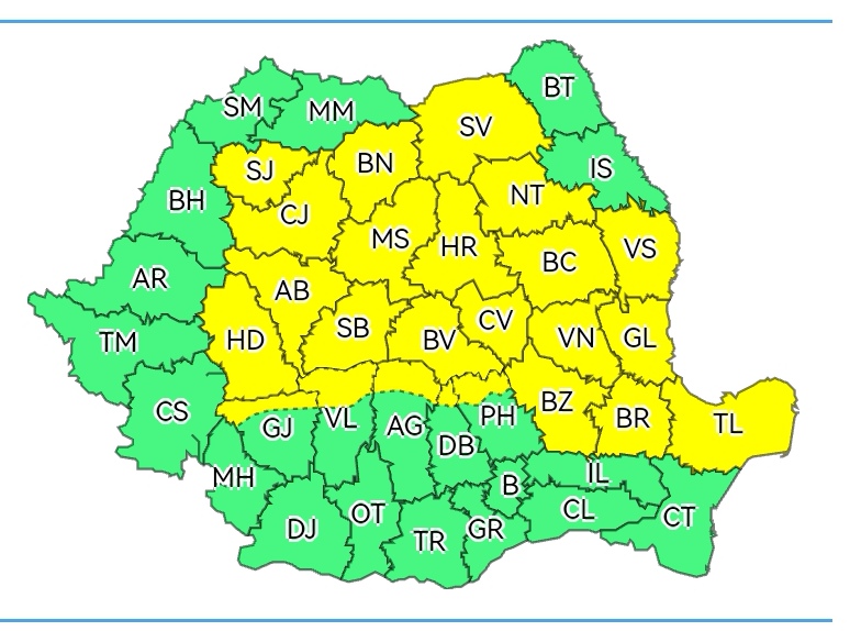 În funcţie de evoluţia şi intensitatea fenomenelor meteorologice, Administraţia Naţională de Meteorologie va actualiza prezentul mesaj.