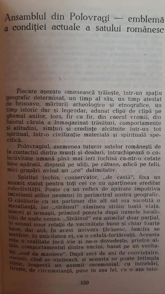 Anul acesta se împlinesc 71 de ani de la înființarea Ansamblului Focloric ,,Cheile Oltețului” conform afirmațiilor lui Titu Rădoi în cartea sa ,,Columnele Prezentului”, unde ansamblul era considerat ,,Emblemă a condiției actuale a satului românesc”. Autoritățile locale din stațiunea turistică Polovragi doresc să marcheze acest eveniment printr-un spectacol organizat în data de 18 iulie 2019, începând cu ora 18.00, pe scena din Vatra Târgului. Spectacolul va aduce pe scenă cinci generații de dansatori și artiști locali care vor repune în scenă suite la fluier și dansuri populare dar și soliști vocali care au fost și sunt membri ai ansamblului.