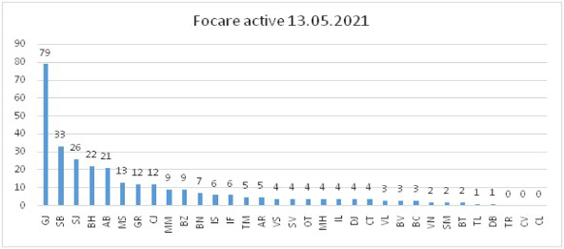 Potrivit situației prezentate de ANSVSA, Gorjul ocupă primul loc pe țară privind numărul focarelor active de pestă porcină africană, numărând nu mai puțin de 79 de focare, fiind urmat de județele Sibiu – 33 de focare și Sălaj – 26 de focare. În intervalul 7 – 13 mai 2021, la nivel național, au fost înregistrate 11 focare noi de PPA: Județul Alba – 1 focar; Județul Bacău – 1 focar; Județul Bistrița Năsăud – 1 focar; Județul Cluj – 3 focare; Județul Gorj – 1 focar; Județul Giurgiu – 1 focar; Județul Maramureș – 1 focar; Județul Satu Mare – 1 focar; Județul Vâlcea – 1 focar. De asemenea, în același interval calendaristic, au fost stinse 51 de focare de PPA: Județul Arad – 10 focare; Județul Bihor – 14 focare; Județul Cluj – 1 focar; Județul Călărași – 1 focar; Județul Covasna – 5 focare; Județul Maramureș – 6 focare; Județul Mureș – 3 focare; Județul Teleorman – 5 focare; Județul Vâlcea – 6 focare. ANSVSA solicită sprijinul cetățenilor pentru respectarea următoarelor măsuri: pentru această boală nu există vaccin, singura metodă de protejare a sănătății animalelor este respectarea condiţiilor de biosecuritate; nu intraţi în adăposturile unde creşteţi porcii cu încălţămintea şi hainele cu care aţi umblat pe stradă, în pădure sau în zonele agricole învecinate cu mediul silvatic; evitați să intrați timp de 48 de ore în adăposturile destinate creșterii porcilor, după ce ați desfășurat activități specifice vânătorii; este recomandat ca pentru dezinfecţia la intrarea în adăpost, să puneţi o tăviţă cu burete sau paie îmbibate cu o soluţie slabă de sodă caustică sau cu un biocid recomandat de un medic veterinar; creşteţi porcii doar în spaţii închise, fără posibilitatea de a veni în contact cu porci din alte exploatații, cu porci mistreţi sau cu proprietari care deţin porci domestici; nu hrăniţi animalele cu resturi alimentare/lături/spălătură provenite de la carnea de porc gătită în familie; dacă există vânători în famile care aduc carne de mistreţ, sub nicio formă nu daţi porcilor apa provenită de la spălarea cărnii sau resturi de carne; nu cumpăraţi purcei din locuri necunoscute, fără a fi identificaţi (cu crotalie) şi fără certificat sanitar veterinar de sănătate eliberat de medicul veterinar de liberă practică împuternicit; vânătorii şi responsabilii fondurilor de vânătoare trebuie să anunţe DSVSA judeţene despre orice situaţie în care au depistat porci mistreţi morţi, ori cu comportament modificat şi să transmită probele pentru diagnosticul de laborator.