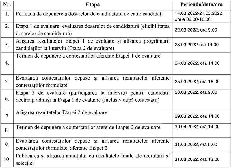 Dosarele depuse pentru înscrierea candidaților la selecție trebuie să conțină următoarele documente: