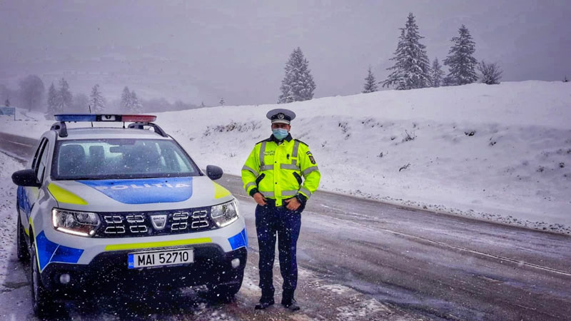 În condiţii de temperaturi scăzute, chiar şi când drumul este uscat, se pot întâlni porţiuni unde există risc de formare a poleiului. De aceea, evitaţi deplasările pe drumurile publice, chiar și pe distanţe scurte, dacă autovehiculul nu este echipat cu anvelope de iarnă. Acționați pedala de accelerație cu moderație atunci când drumul este acoperit cu zăpadă, gheață sau polei. Nu uitați că puteți pune în pericol nu doar propria persoană, ci și ceilalți ocupanți ai autovehiculului și pe ceilalți participanți la trafic. Reamintim că utilizarea anvelopelor de iarnă este obligatorie atunci când se circulă pe drumuri acoperite cu zăpadă, gheaţă sau polei, iar autovehiculele cu greutatea de peste 3,5 tone trebuie echipate cu dispozitive antiderapante. Nerespectarea acestor obligații se sancționează cu amendă între 9 și 20 de puncte-amendă, și reținerea certificatului de înmatriculare/înregistrare al autoturismului, eliberându-se o dovadă înlocuitoare fără drept de circulație.