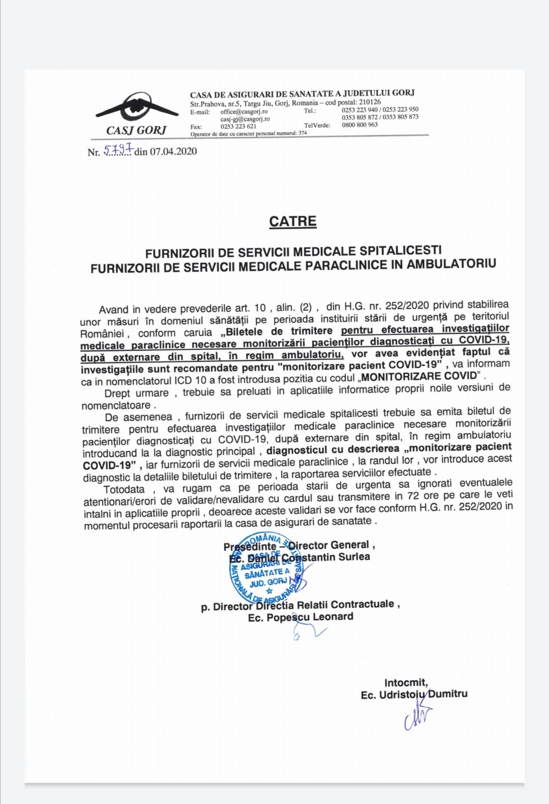 Apelul CAS Gorj către furnizorii de servicii medicale