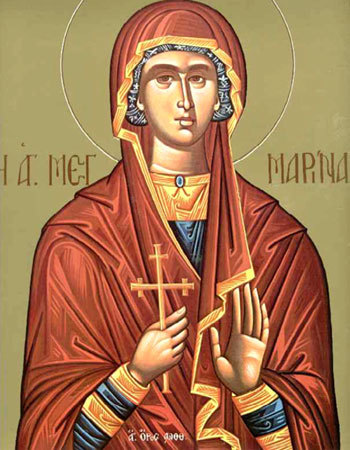 Sfânta Marina s-a născut din părinţi păgâni, în Antiohia Pisidiei şi a primit învăţătura despre Hristos la vârsta de 12 ani. După moartea mamei sale, tatăl său nu a mai considerat-o fiica sa şi a început s-o urască pentru credinţa ei în Hristos. Într-o zi, a plecat cu oile tatălui său la câmp, unde s-a întâlnit cu eparhul Olimvrie, un mare prigonitor al creştinilor, dar, acesta, rănit de frumusetea ei, s-a hotărât s-o ia de soţie. Când a aflat că este creştină a poruncit să fie dusă în cetate spre a fi chinuită. Acolo, a refuzat să aducă jertfă idolilor, motiv pentru care a fost bătută şi aruncată în temniţă, unde diavolul în chip de şarpe, s-a încolăcit în jurul capului ei ca s-o omoare! Dar, când Marina s-a însemnat cu semnul Sfintei Cruci, şarpele a murit, iar ea a fost înconjurată de-o lumină cerească. În temniţă i s-a arătat o cruce strălucind ca o lumină negrăită, iar deasupra crucii era o porumbiţă albă care grăia: ,,Bucură-te, Marino, porumbiţă cuvântătoare a lui Hristos, fiică a Sionului celui de sus, căci, iată, ziua bucuriei tale s-a apropiat”! Acolo, în temniţă, Sfânta Marina se ruga în auzul tuturor, către Dumnezeu, zicând: „Doamne, Iisuse Hristoase, Dumnezeul meu, nu mă lăsa pe mine şi nu da sufletul meu întru stricăciune, ca să nu mă biruiască vrăjmaşii mei; auzul meu să nu se spurce din cuvintele lor cele viclene; înţelegerea mea să nu se schimbe din înşelăciunile lor cele spurcate; inima mea să nu se înfricoşeze de îngrozirile lor cele cumplite. Nu face, Doamne, ca a mea credinţă să fie aruncată în tina noroiului şi să nu se bucure de mine diavolul cel urâtor de bine, ci trimite-mi ajutor din înălţimea sfântului Tău scaun şi-mi dă înţelepciune, spre deschiderea gurii mele, ca, înarmându-mă cu puterea Ta şi cu darul Tău înţelepţindu-mă, să stau fără de frică şi să dau răspuns la întrebarea ighemonului. Aşa, Doamne, caută spre mine cu milostivire în ceasul acesta. Iată, acum sunt ca o oaie în mijlocul lupilor, ca o pasăre între cei ce o vânează şi ca peştele în mreajă. Deci, vino şi mă izbăveşte de toate meşteşugirile vrăjmaşului”! Sfânta Marina s-a vindecat de toate rănile, dar, în ziua următoare a fost aruncată în foc şi în apă, îndurându-le pe toate. În cele din urmă, a fost condamnată la moarte prin decapitare şi a trecut la cele veşnice în anul 270, la numai 15 ani!