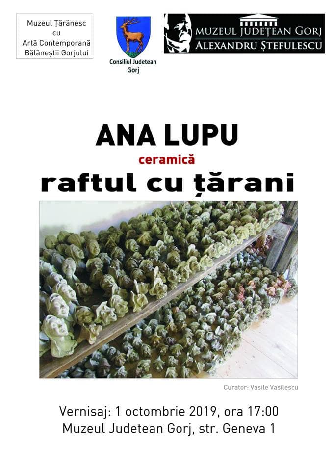 În această după-amiază, de la ora 17:00, Muzeul Țărănesc cu Artă Contemporană în parteneriat cu Muzeul Județean Gorj deschide expoziția de ceramică „Raftul cu Țărani / Chipuri de Pământ” a artistei Anei Lupu din Bălăneştii Gorjului. Eveniment va avea loc la Muzeul Judeţean „Alexandru Ştefulescu” din Târgu Jiu, strada Geneva.