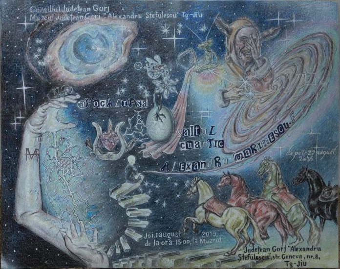 Astăzi, 1 august 2019, ora 15.00, la Muzeul Județean Gorj ”Alexandru Ștefulescu” din Târgu Jiu (str. Geneva, nr. 8), va avea loc vernisajul expoziției ”Apocalipsa și Saltul Cuantic”, semnată de artistul vizual Alexandru Marinescu. Expoziția poate fi vizitată în perioada 1-29 august 2019.