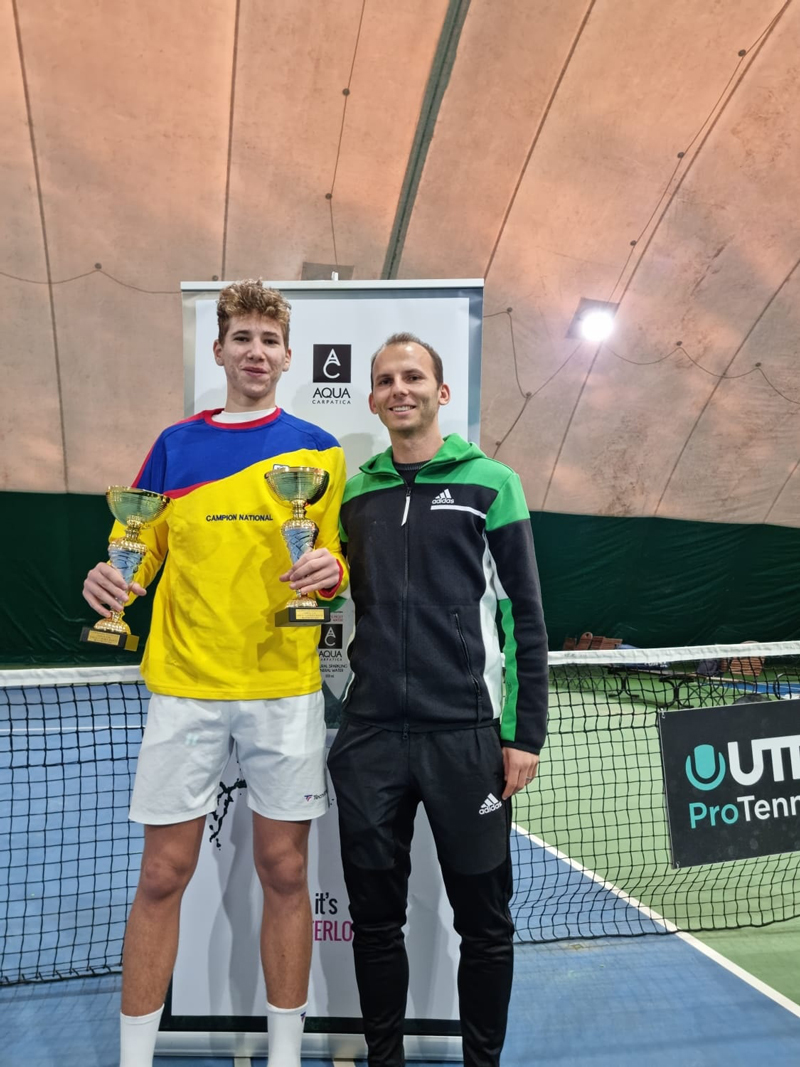 La clubul gorjean, sportivul are în spate oameni cu experienţă mare în tenis şi nu se află la prima performanţă majoră la juniori. ,,Este un jucător legitimat la ATC Elite încă din anul 2018, de atunci a început antrenamentele cu noi. A fost şi campion european cu echipa României în anul 2020, iar săptămâna aceasta a câştigat Campionatele Naţionale de iarnă, la simplu şi dublu. Este antrenat de echipa ATC Elite. Preparator fizic este Daniel Tudorache, iar sfătuitorul său este Florin Mergea”, a declarat antrenorul gorjean Ştefan Piţian, care este şi directorul clubului ATC ELITE Târgu Jiu. Performanţa de la dublu a fost obţinută alături de tenismenul David Carteputredă.