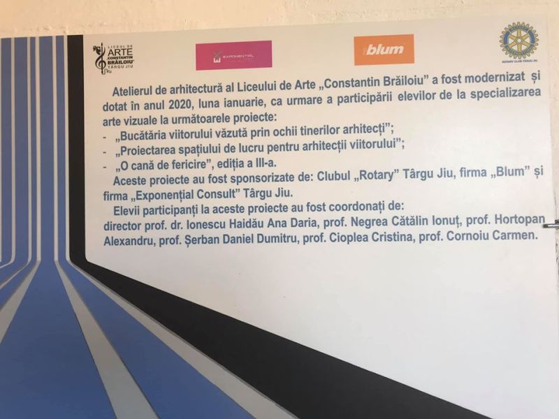 arhitecți pot învăța într-un spațiu modern realizat împreună cu Firma Blum și Firma Exponențial Consult”, au transmis reprezentanții Clubului Rotary Târgu-Jiu.