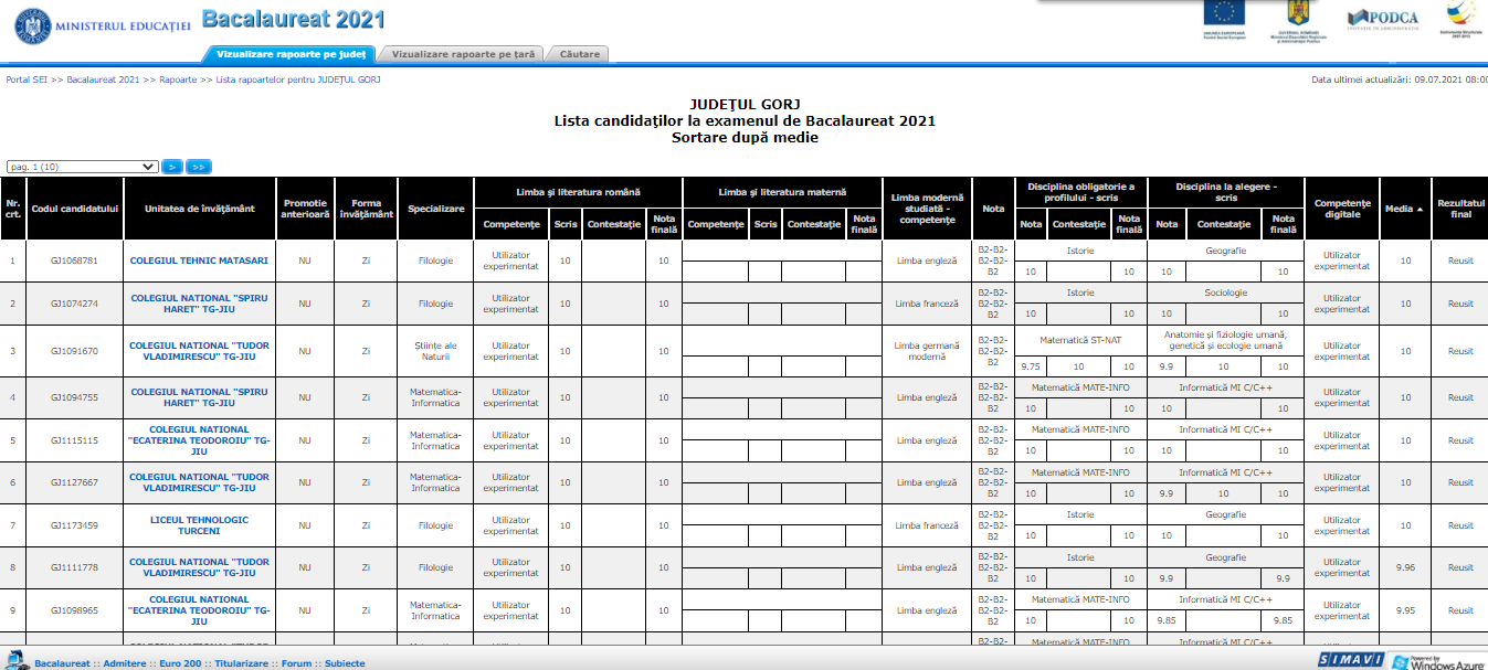 Rezultatele la prima sesiune a examenului de bacalaureat, după soluţionarea contestaţiilor, au fost afişate pe site-ul bacalaureat.edu.ro. Reamintim că rata finală de promovare înregistrată la nivelul județului nostru este 58,68%, iar numărul mediilor de 10 a crescut de la 5 la 7.