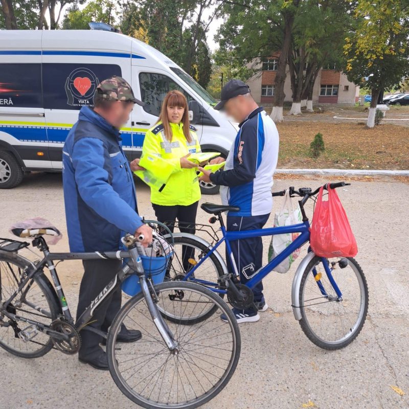 Pe lângă recomandările cu caracter informativ-preventiv, polițiștii le-au distribuit cetățenilor și veste reflectorizante, care să le sporească vizibilitatea, atunci când circulă pe drumurile publice.
