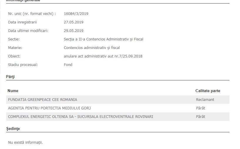 Agenţia pentru Protecţia Mediului Gorj a fost acţionată în instanţă de către ecologişti pentru autorizaţia de mediu a Termocentralei Rovinari. Noua autorizație permite ca termocentrala din Rovinari să funcționeze pe o perioadă nedeterminată.