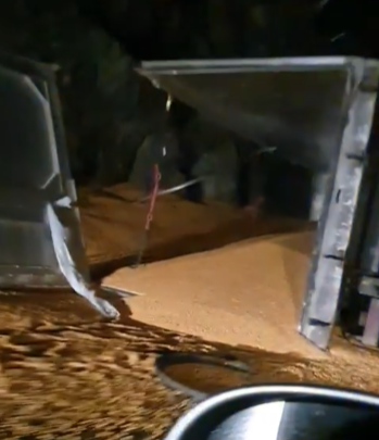 „Am avut o sesizare prin apelul 112, referitoare la un autotren incarcat cu porumb, care ar fi avut o explozie la un pleu, ocazie cu care s-a varsat o parte din porumb, fiind ocupată o banda de circulație. În prezent, traficul este dirijat, circulându-se pe o singură bandă”, au comunicat polițiștii.