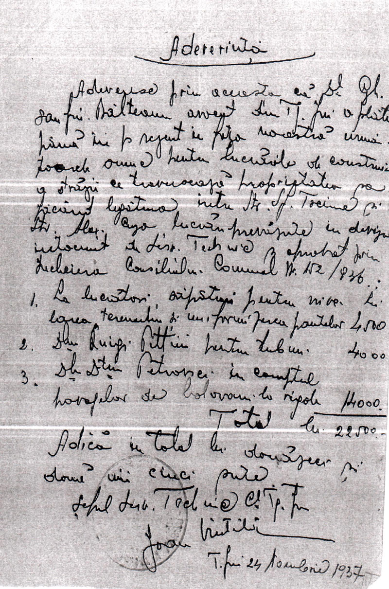 Avocatul G.S Bâlteanu se adresează încă o dată Primăriei Târgu-Jiu la 21 Iulie 1937 pentru a declanşa începerea lucrărilor.