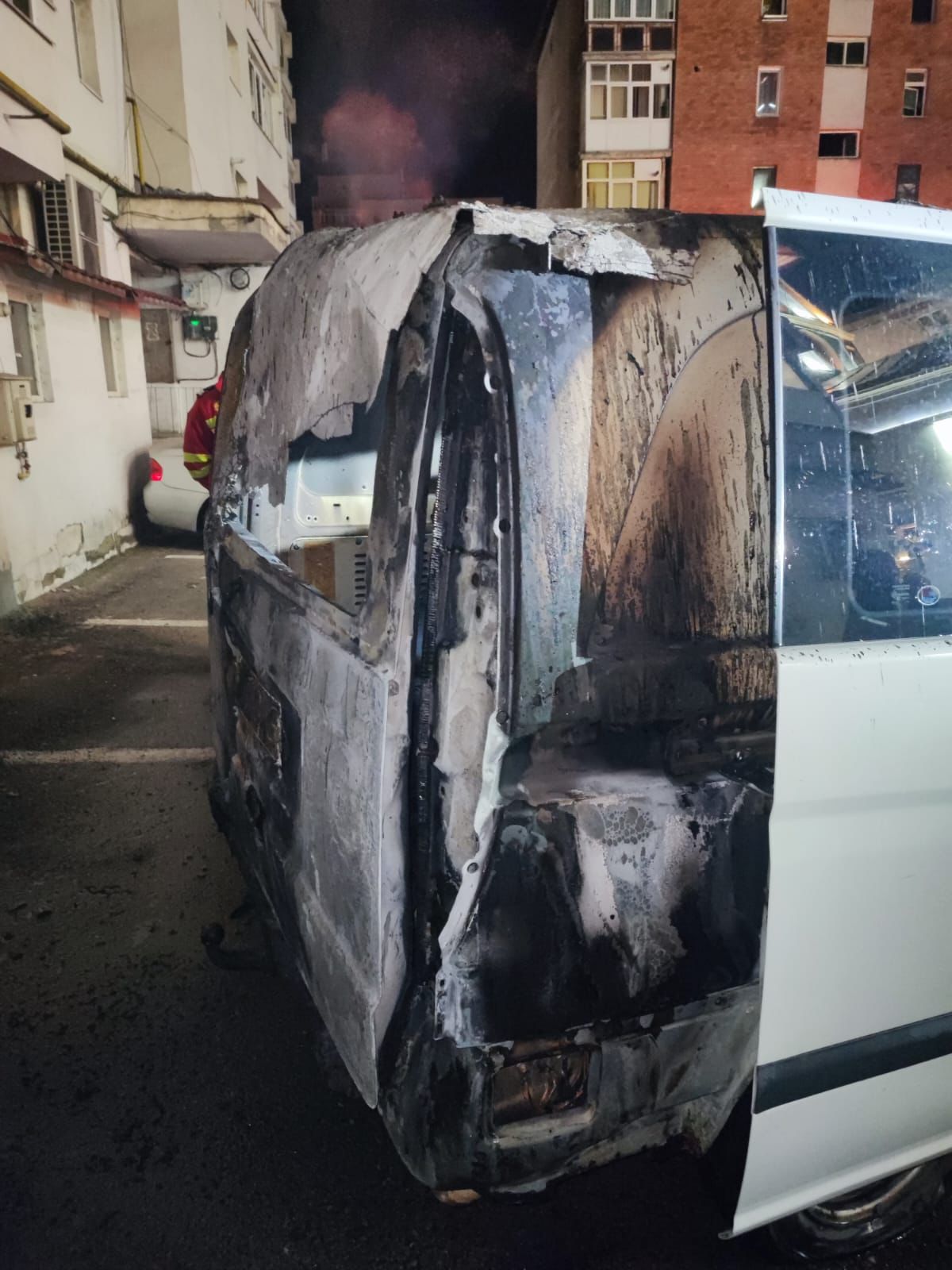 Au ars o parte din autovehicului parcat, și aproximativ 10 mp din fațada blocului, cauza probabilă a incendiului fiind o țigară aruncată la întâmplare”, a informat instituția.