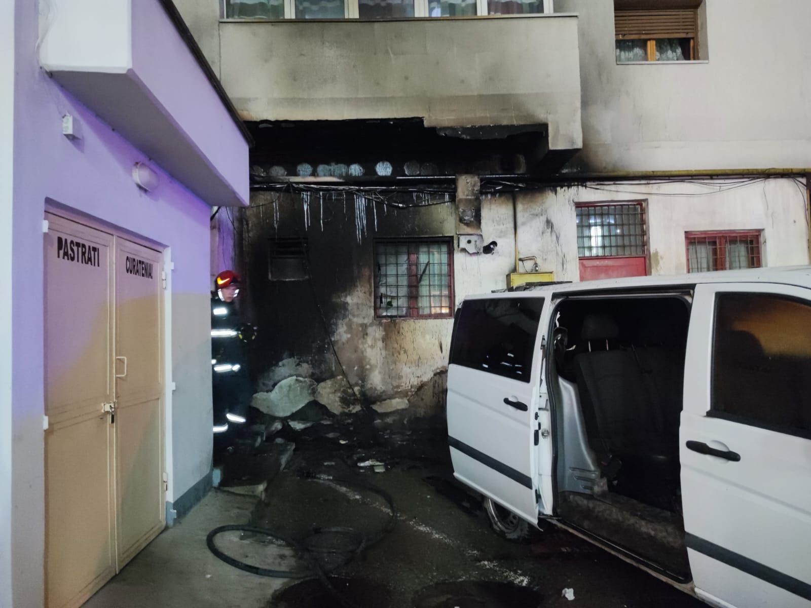 ISU Gorj a comunicat, în această dimineață, că a izbucnit un incendiu aproape de centrul orașului în care au ars, parțial, fațada unui bloc, dar și un autoturism care era parcat acolo: