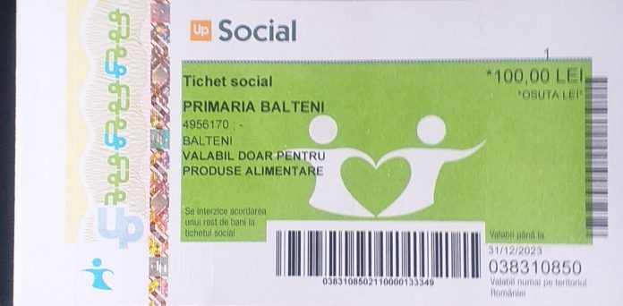 Începând de astăzi, Primăria Comunei Bâlteni va distribui tichetele sociale în valoare de 100 de lei pentru persoanele vârstnice. Acestea se acordă cu ocazia Zilei Internaționale a Persoanelor Vârstnice. De tichetele acordate de Primăria Bâlteni vor beneficia bărbații cu vârsta implinită de 65 de ani, respectiv femeile care au împlinit 63 de ani.