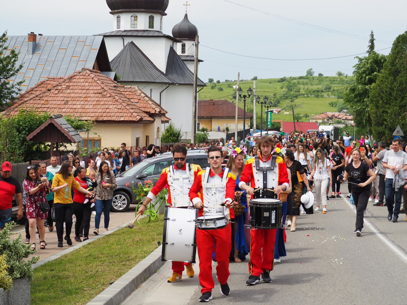 Însoțiți de toboșari și de niste tinere care le aruncau pe drumul lor petale de flori, micuții