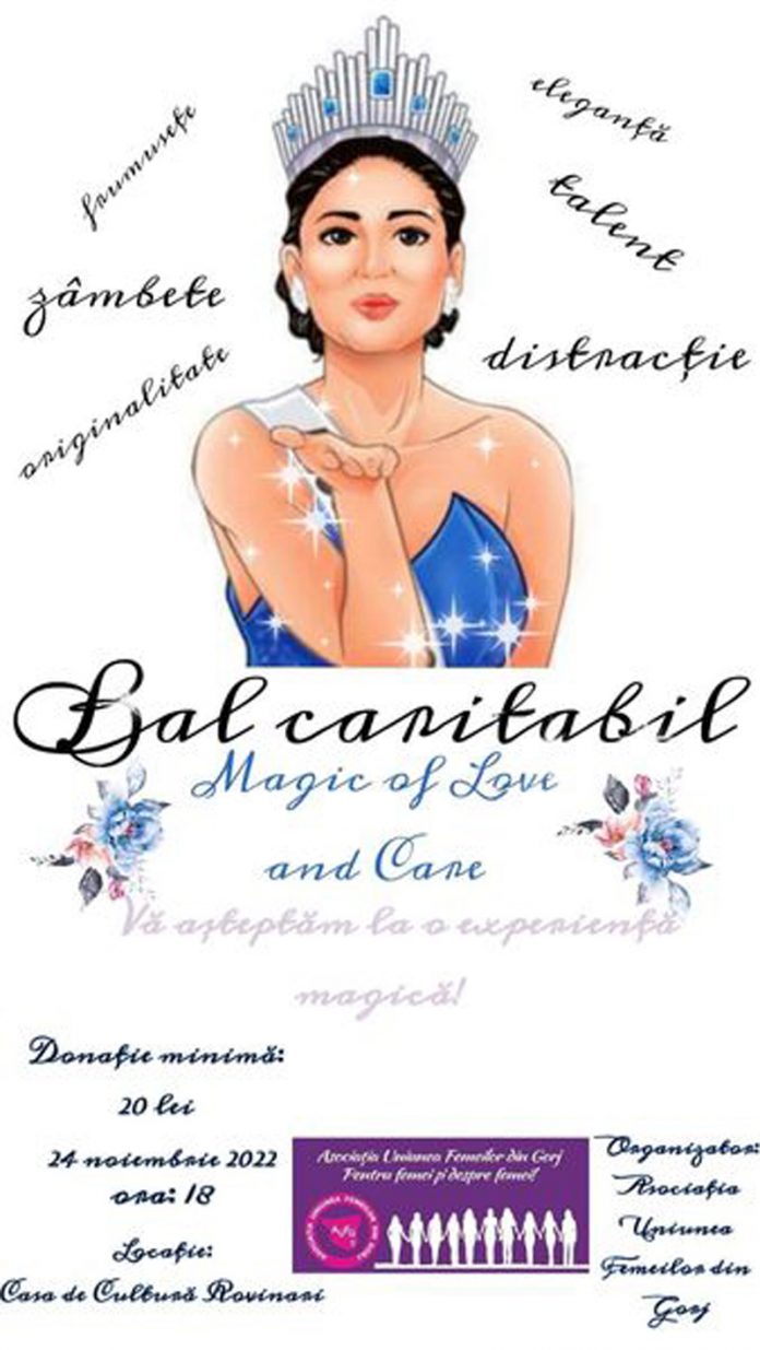 Balul Caritabil „Magic of Love and Care” în Rovinari cuprinde un concurs de MISS ,,S-au înscris tinere din Gorj cu vârstă între 16 și 19 ani, tinere care vor reprezenta pentru noi eleganță, talent și frumusețe. Câștigătoarele vor beneficia de premii semnificative, în bani și cadouri” au transmis reprezentanta Asociației Uniune Femeilor din Gorj, Simona Rădoi. Înscrierile s-au făcut în perioada 24 octombrie – 10 noiembrie. ,,Ne dorim să oferim o experiență de neuitat atât pentru concurenți, cât și pentru spectatori, astfel vom avea probe inedite și invitați speciali care vor mulțumi toate categoriile de vârstă. Haideți să oferim magie și culoare celor din jur. Să fim buni și să ne bucurăm de frumusețe și bunătate”, a fost mesajul Asociației.