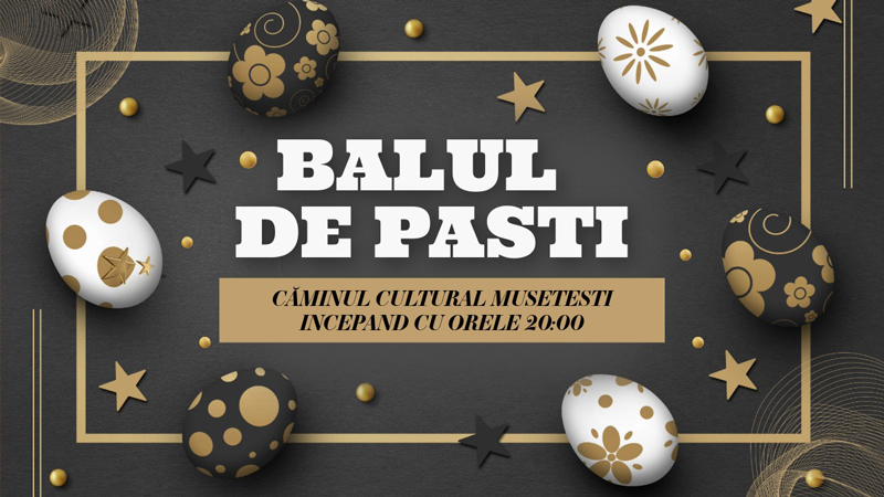 În prima zi de Paște, un eveniment deosebit va avea loc în comuna Mușetești. Localnicii sunt invitați la un bal, ce va avea loc în incinta Căminului Cultural. ,,Căminul Cultural Mușetești vă invită la balul de Paști care va avea loc duminică, 5 mai, ora 20:00. Încercăm să reînviem o tradiție specifică Mușeteștiului, adică balurile din zilele de sărbătoare. Cântecul, dansul, bucuria, într-un cuvânt exprimările specifice unei sărbători pot și ar trebui să fie liantul social al unei comunități. Evenimentul va fi transmis în direct și în întregime pe pagina de Facebook a căminului, iar dedicațiile și comentariile urmăritorilor vor fi vizibile în timp real. De asemenea am pregătit câteva surprize care vor condimenta întregul eveniment”, au transmis organizatorii balului.