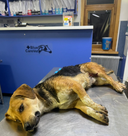 ”La fața locului s-a constatat că exemplarul canin, mascul, rasă metis, cu vârsta aproximativă de doi ani, prezintă o plagă deschisă și o fractură de femur la membrul posterior stâng.