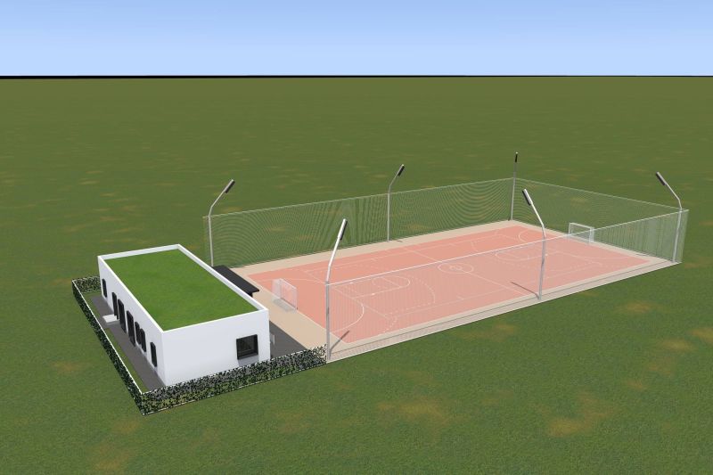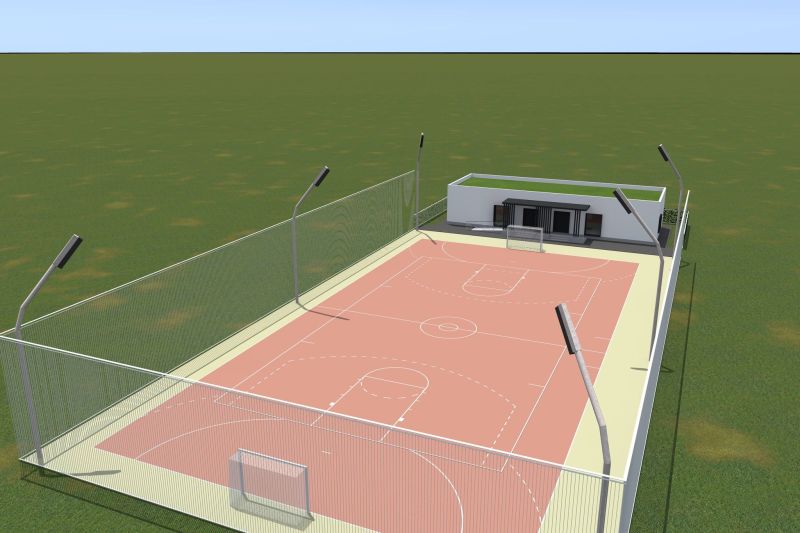 Baza sportivă de tip 2 va cuprinde un teren multifuncțional pentru handbal, baschet, tenis și volei, o clădire pentru vestiare, alei pietonale și spații verzi cu gazon și arbuști.