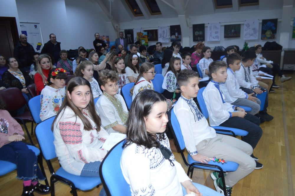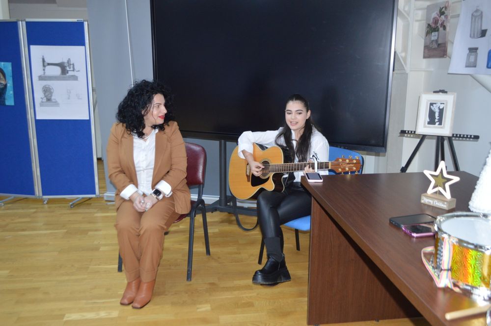 Elevii au fost întâmpinați de Maria-Luiza Sandu, managerul Bibliotecii Județene ”Christian Tell” Gorj, care i-a felicitat pentru implicarea și seriozitatea lor. Aflându-ne în perioada sărbătorilor de iarnă, evenimentul a continuat cu Bianca Hodolean, voluntara Bibliotecii Județene, care i-a încântat pe cei prezenți, cu vocea și chitara ei, interpretând trei colinde. Copiii, împreună cu cadrul didactic coordonator, au continuat în aceeași notă și le-au prezentat părinților un