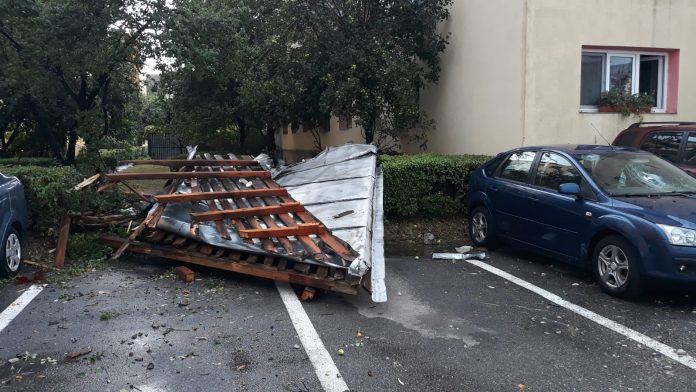 În municipiul Târgu-Jiu au fost peste zece intervenții, pentru degajarea acoperişurilor smulse de vânt și aruncate peste mai multe autoturisme parcate.