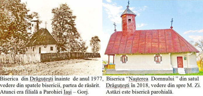 Două fotografii ale bisericii vechi din Drăguțești cu hramul “Nașterea Maicii Domnului” sunt date în continuare.