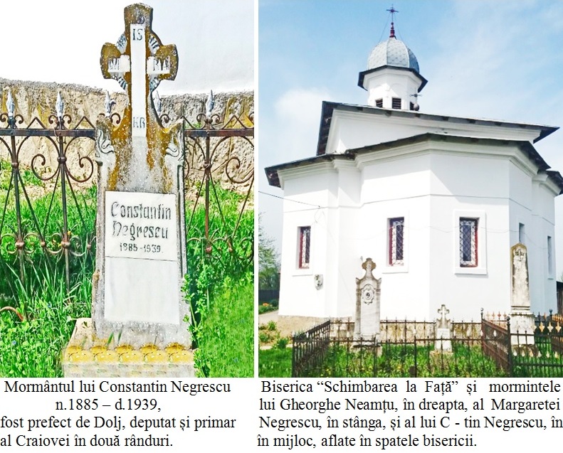 “Constantin Neamțu a fost primar al Craiovei în 1923-1924, funcție pe care a încredințat-o apoi nepotului său Constantin Negrescu, acesta fiind primar între 1924-1926. Înainte de a fi primar, Constantin Negrescu a fost funcționar la Banca Comerțului și devotat trup și suflet unchiului său. De altfel, Neamțu l-a ajutat să facă carieră politică. În 1927-1928 el a fost prefect de Dolj, apoi deputat între 1933 – 1937, primar numit al Craiovei între 1934-1937 și primar ales între 1937-1938. A fost un om onest, a murit sărac și dator. Cunoscând situația, Constantin Neamțu i-a acordat o pensie viageră soției lui Negrescu” . Probabil, așa se explică faptul că acesta a ales să-și doarmă somnul de veci în spatele Bisericii din Iași-Gorj, alături de sora sa, Margareta Negrescu, și de bunicul lui, Gheorghe Neamțu.