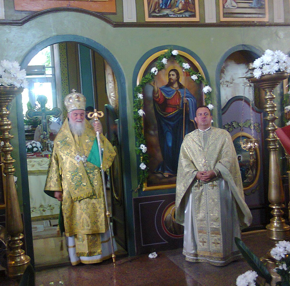condamnaţi, suntem dispreţuiţi şi suntem alungaţi! Acest lucru înseamnă că Evanghelia de astăzi este prezentă şi actuală în lumea contemporană! Că mulţi văd şi puţini înţeleg! Că ochi au, şi nu văd, urechi au, şi nu aud! Avem nevoie de vindecarea ochilor noştri sufleteşti, iar, această vindecare este absolut necesară! Spre exemplu, Sfântul Constantin cel Mare, care credea în Hristos, însă, avea nevoie de o «probă» a existenţei Lui Dumnezeu şi a puterii Sale, pentru că a fost luminat în sufletul său curat, prin acea arătare a Sfintei Cruci pe cer, cu acel înscris: «Cu acest semn, vei învinge!». Şi noi, avem această putere a Sfintei Cruci, iar, Sfântul Constantin a primit această putere dumnezeiască şi l-a biruit pe vrăjmaş! Dumnezeu ne-a dat această «armă» care este Sfânta Cruce, cu care luptăm împotriva diavolului, că se îngrozeşte şi se cutremură la vederea ei! Sfinţii Împăraţi pe care îi cinstim astăzi, sunt cu adevărat «văzători» de Dumnezeu! L-au văzut pe Dumnezeu, L-au urmat şi s-au mântuit, de aceea, îi cinstim cu mare evlavie în Biserica noastră, pentru că sunt strămoşii noştri, care ne-au învăţat credinţa noastră ortodoxă, ne-au ajutat prin edictele lor, iar, de atunci, credinţa creştină a fost liberă în Imperiul Roman. Şi de atunci, biserici şi mănăstiri s-au construit, s-au făcut preoţi şi episcopi care să ducă «mesajul» Mântuitorului Hristos, învăţătura Sa la toate neamurile! Pe aceşti Sfinţi Împăraţi, Constantin şi Elena, îi cinstim astăzi, tocmai în această Duminică sfântă a vindecării orbului din naştere, ca şi noi să-i urmăm pe aceşti sfinţi, în viaţa noastră şi în tot ceea ce facem noi! Mulţumim Lui Dumnezeu pentru această sfântă zi, pentru această Sfântă Liturghie şi îi felicităm pe toţi cei care poartă numele Sfinţilor Împăraţi Constantin şi Elena, pe Părintele Constantin, care s-a învrednicit să primească rangul de iconom stavrofor, cel mai înalt din rânduiala noastră bisericească! Felicităm pe Părintele Protopop (Ionel Câmpeanu n.n.), pe Părintele Vlădoiu, vă felicităm şi pe dumneavoastră, şi Îl rugăm pe Bunul Dumnezeu, să vă dea sănătate şi lumină duhovnicească din Lumina Mântuitorului nostru Iisus Hristos! Amin”. În după-amiaza zilei Sărbătorii «Sfinţilor Împăraţi Constantin şi Elena», Înaltpreasfinţitul Părinte, acad. dr. IRINEU, Arhiepiscopul Craiovei şi Mitropolitul Olteniei a pus piatra de temelie a Bisericii cu Hramul «Sfântul Cuv. Irodion de la Lainici», situată în Municipiul Târgu-Jiu, pe strada Jiului, la care, aşa cum ne-a precizat Părintele Protopop Marian Mărăcine, se vor ruga credincioşii din Calea Severinului şi zona «Meteor».