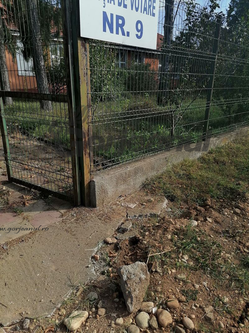Electorii din Târgu-Jiu vor fi întâmpinați cu bolovani la poartă de intrare în unitatea de învățământ care găzduiește, duminică, secția de votare nr. 9 din Târgu-Jiu. Din ,,grija” autorităților locale, locația este un monument de nepăsare, în zonă efectuându-se lucrări de canalizare chiar pe partea cu Secția de votare, în timp ce mizeria este la ea acasă în curtea pe care o vor traversa târgujienii chemați la vot.