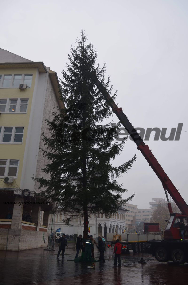 Autoritățile locale târgujiene au montat, ieri, după-amiază, un nou brad în centrul orașului. Acesta a fost adus de la Obștea Peștișani, fiind vorba de un brad natural și nu unul artificial ori din led-uri cum s-a montat la Târgu-Jiu în ultimii ani, în apropierea Sărbătorilor de iarnă. Vechiul brad care era format doar din led-uri și pentru care fosta conducere a Primăriei Târgu-Jiu a plătit fabuloasa sumă de 100 de mii de euro, zace acum într-un depozit, autoritățile precizând că momentan nu a fost găsită o locație pentru montarea sa. Bradul natural montat, ieri, la Târgu-Jiu are o înălțime de 18 metri. Iluminatul festiv în municipiul Târgu-Jiu va fi inaugurat în seara zilei de 1 decembrie.