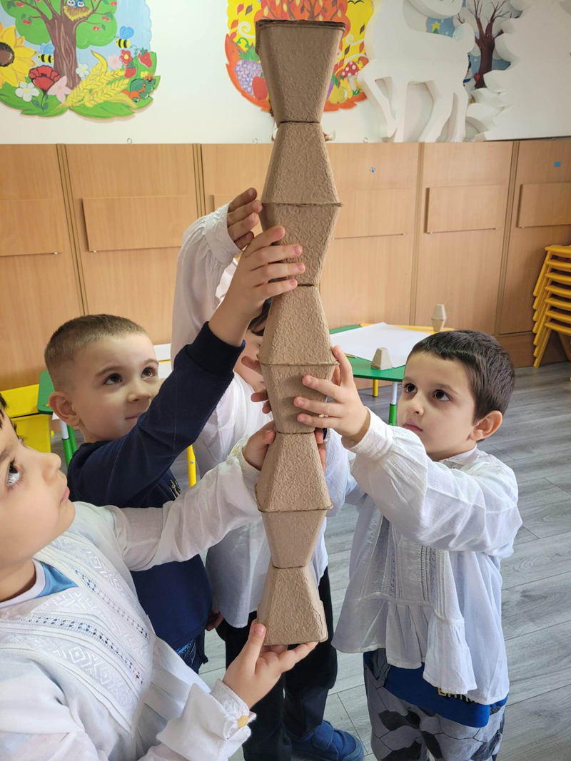 Plini de imaginație și creativitate preșcolarii împreună cu doamnele educatoare au desenat, au pictat, au modelat și astfel au creat universul lui Brâncuși.