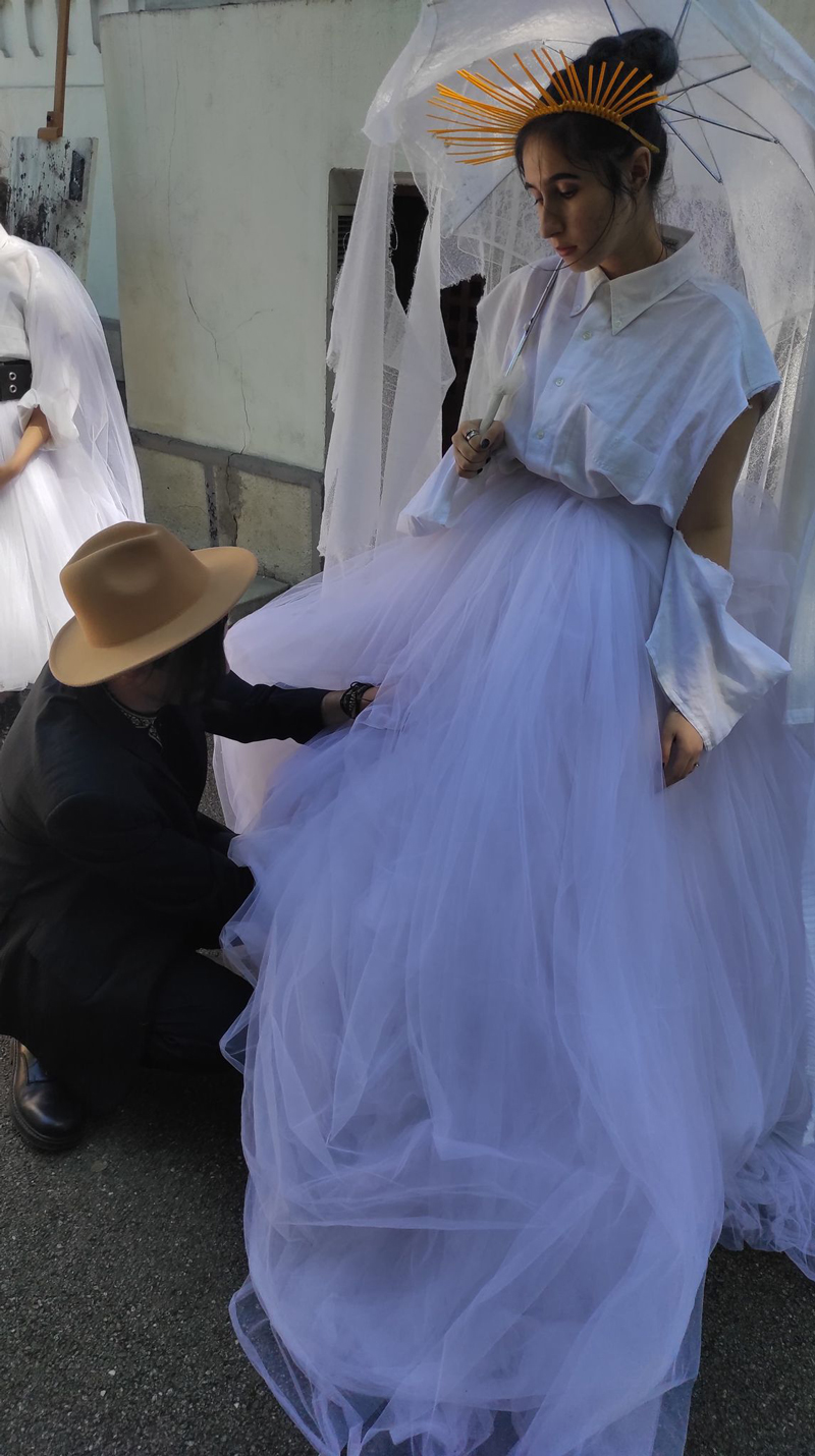 Ținutele lui Buză sunt tinerești, nonconformiste și fresh, asta chiar dacă designerul a folosit doar pentru o rochie o cantitate impresionantă de tul.