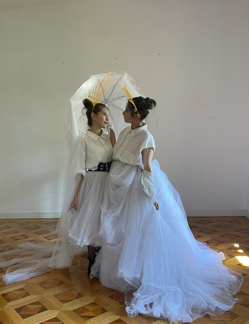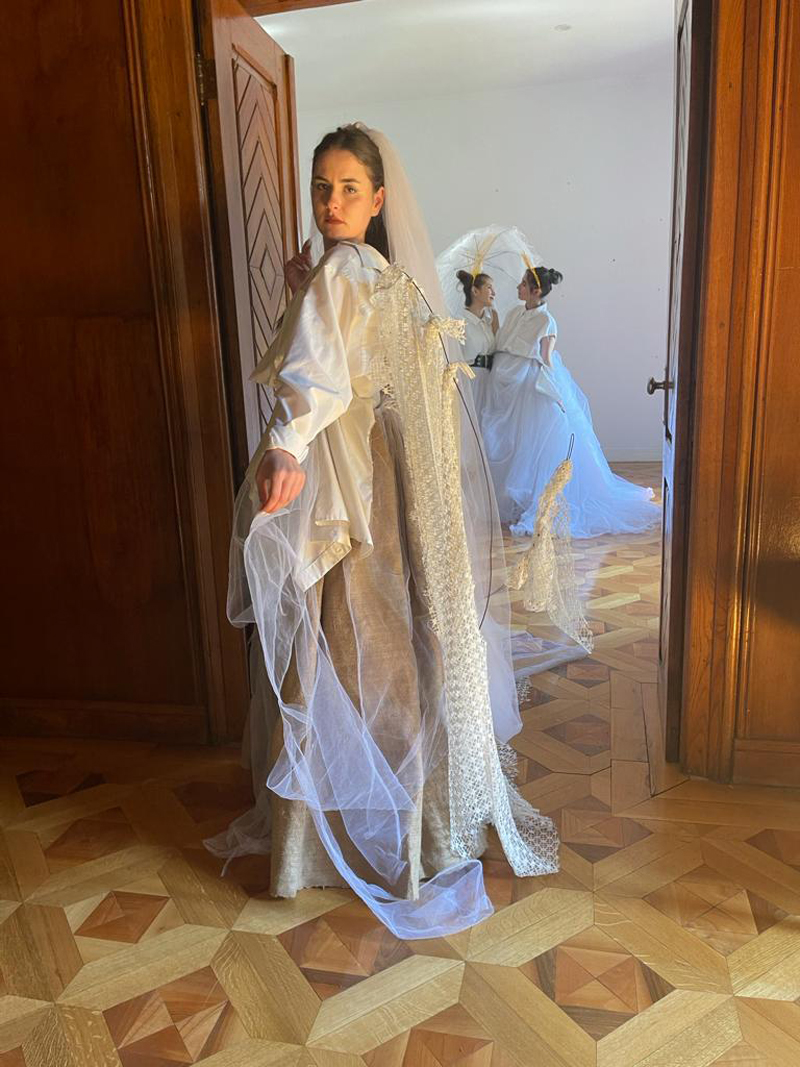 A dat naștere în atelier la trei rochii de mireasă, una mai deosebită ca cealaltă.