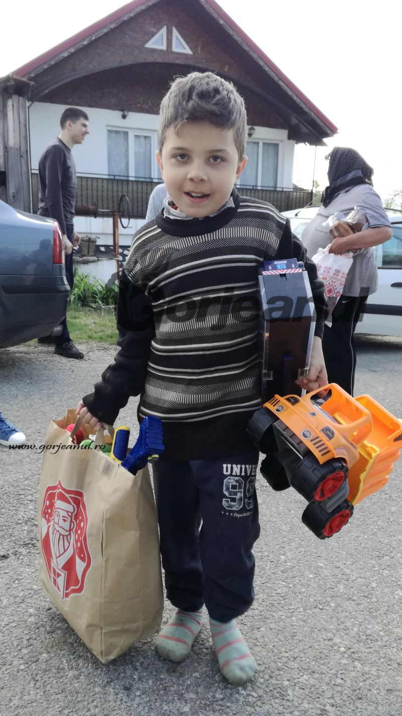 O parte dintre jucării au ajuns şi la una dintre grădiniţele din localitate. Campania „Gorjeanul” va continua miercuri cu o staţionare rodnică în comuna Berleşti.