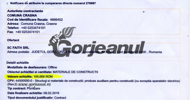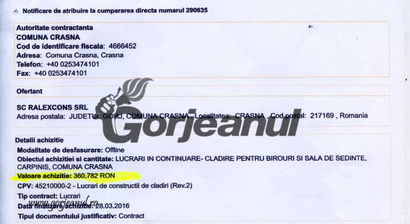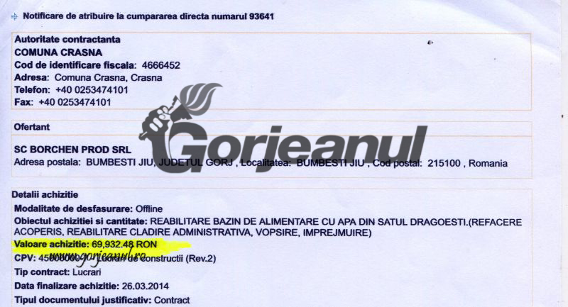 Dar pentru a înțelege mai bine cum a acționat primarul Aurel Vamvu, vă prezentăm mai jos, câțiva dintre beneficiarii contractelor încredințate de instituție, pe negociere directă, plătiți din banii publici, adică cei ai localnicilor din Crasna.