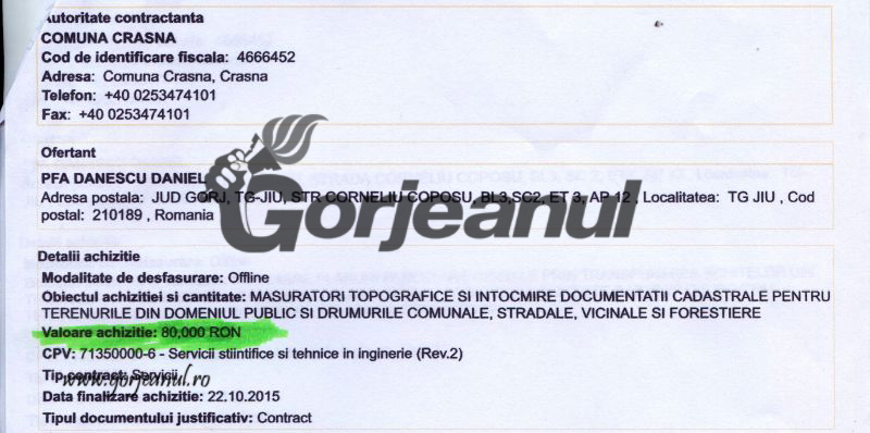 Vamvu îi dă două contracte și lui Daniel Dănescu, care deține un PFA în Târgu-Jiu. Pentru măsurători topografice și schițe cadastrale, primăria semnează două contracte în aceeași zi, 22 octombrie 2015, cu persoana respectivă, unul de 30.000 de lei și altul de 80.000.