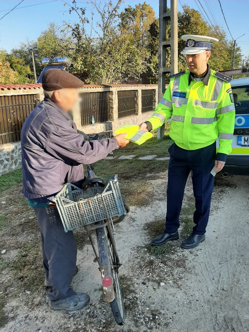 privind importanța deținerii vestelor reflectorizante atunci când circulă pe timpul nopții sau în zilele în care vizibilitatea este scăzută și au distribuit acestor categorii de participanți la