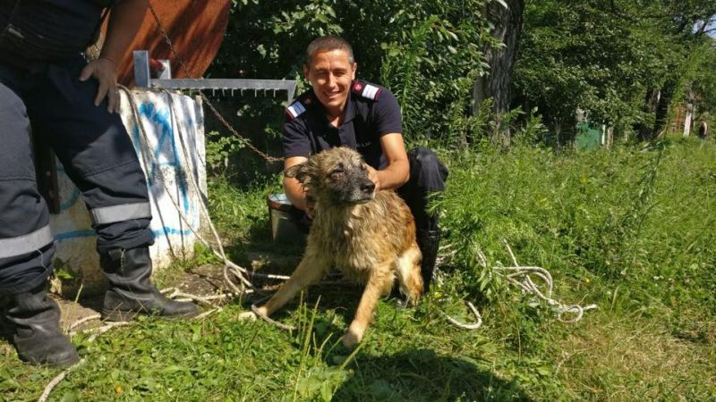 Nu a durat mult și la fața locului, în satul Curtișoara, la o fântână de pe marginea drumului, un echipaj al Detașamentului de Pompieri Târgu-Jiu a intervenit, cu mijloacele din dotare și cu tehnici dobândite în anii de experiență pentru scoaterea câinelui în așa fel încât acesta să nu se sperie mai mult decât era, reușind astfel salvarea lui fără probleme.