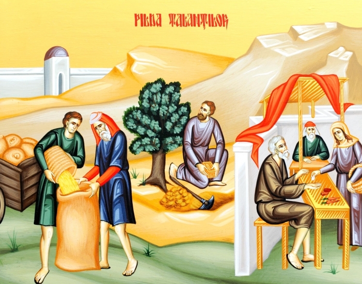 Aşadar, în Duminica a 16-a după Rusalii (Pilda talanților) Matei 25, 14-30, vom asculta spusele Sf. Ev. Matei, care sună astfel: «Zis-a Domnul pilda aceasta: un om oarecare, plecând departe, și-a chemat slugile și le-a dat pe mână avuția sa. Unuia i-a dat cinci talanți, altuia doi, iar altuia unul, fiecăruia după puterea lui, și a plecat. Îndată mergând, cel ce luase cinci talanți a lucrat cu ei și a câștigat alți cinci talanți. De asemenea, și cel cu doi a câștigat alți doi. Iar cel ce luase un talant s-a dus, a săpat o groapă în pământ și a ascuns argintul stăpânului său. După multă vreme a venit și stăpânul acelor slugi și a făcut socoteala cu ele. Și, apropiindu-se cel care luase cinci talanți, a adus alți cinci talanți, zicând: Doamne, cinci talanți mi-ai dat, iată alți cinci talanți am câștigat cu ei. Zis-a lui stăpânul: Bine, slugă bună și credincioasă! Peste puține ai fost credincios, peste multe te voi pune; intră întru bucuria domnului tău. Apropiindu-se și cel cu doi talanți, a zis: Doamne, doi talanți mi-ai dat, iată alți doi talanți am câștigat cu ei. Zis-a lui stăpânul: Bine, slugă bună și credincioasă! Peste puține ai fost credincios, peste multe te voi pune; intră întru bucuria domnului tău. Apropiindu-se apoi și cel care primise un talant, a zis: Doamne, te-am știut că ești om aspru, care seceri unde n-ai semănat și aduni de unde n-ai împrăștiat. De aceea, temându-mă, m-am dus de am ascuns talantul tău în pământ; iată, ai ce este al tău. Și răspunzând, stăpânul său i-a zis: Slugă vicleană și leneșă, știai că secer unde n-am semănat și adun de unde n-am împrăștiat? Se cuvenea, deci, ca tu să dai banii Mei schimbătorilor de bani, și eu, venind, aș fi luat ce este al meu cu dobândă. Luați, deci, de la el talantul și dați-l celui care are zece talanți. Căci tot celui ce are i se va da și-i va prisosi, iar de la cel ce n-are și ce are i se va lua. Iar, pe sluga netrebnică aruncați-o în întunericul cel mai din afară. Acolo va fi plângerea și scrâșnirea dinților. Acestea zicând, a strigat: Cel ce are urechi de auzit, să audă»! Prin aprofundare, vom afla că Evanghelia Sf. Ev. Matei cuprinde 5 părţi, fiecare cu câte o secțiune narativă, incluzând, mai ales, istorisiri ale unor minuni, cu câte o mare cuvântare a Mântuitorului Hristos. Merită să precizăm că cea de-a cincea este Cuvântarea eshatologică (Mt. cap. 24 25), deoarece, atunci când Domnul vesteşte dărâmarea Ierusalimului, care s-a întâmplat la anul 70, ucenicii Săi, punând în legătură această catastrofă cu sfârşitul lumii, Îl întreabă: «Spune nouă, când vor fi acestea şi care este semnul venirii Tale şi al sfârşitului veacului?», după care Domnul refuză să le răspundă în felul în care așteptau ei un răspuns, mai ales că ideea esenţială a primei părţi a cuvântării spune: «Iar de ziua şi ceasul acela nimeni nu ştie, nici îngerii din ceruri, nici Fiul, ci numai Tatăl», însă, în răspunsul Domnului este ilustrată ideea că Fiul Omului va veni pe neaşteptate: „De aceea, şi voi fiţi gata, că în ceasul în care nu gândiţi Fiul Omului va veni” (v. 44), prin aceasta, noi înţelegând că toţi credincioşii trebuie să fie priveghetori în aşteptarea venirii lui Hristos. Totodată, îndemnul la priveghere este exprimat astfel: „Privegheaţi, deci, că nu ştiţi în care zi vine Domnul vostru”, ceea ce ne arată că va trebui să desluşim şi modul cum trebuie să fie această priveghere activă, de asumarea cu fidelitate a responsabilităţii omului, fiindcă Bunul Dumnezeu îi cere omului numai ceea ce poate el să facă roditori din talanţii dăruiţi sau roditoare din calităţile pe care le-a primit!