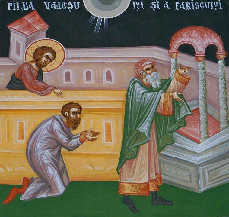Aşadar, pe prima treaptă a «scării» Triodului, în Duminica recunoscută îndeobşte sub numele de «a Vameşului şi a Fariseului», putem să înţelegem şi cum s-au rugat fiecare în parte: fariseul cu mândrie şi cu aroganţă, pentru că, de fapt, el nu s-a rugat, ci s-a lăudat, iar vameşul cu smerenie, cu umilinţă şi mai ales, cu discreţie s-a îndreptat spre mântuire. Prin urmare, să vedem una dintre cele mai scurte parabole de cinci versete.care spune că: «Doi oameni s-au suit la Templu ca să se roage: unul fariseu şi celălalt vameş. Fariseul, stând, aşa se ruga în sine: Dumnezeule, îţi mulţumesc că nu sunt ca ceilalţi oameni, răpitori,nedrepţi, adulteri, sau ca şi acest vameş. Postesc de două ori pe săptămână, dau zeciuiala din toate câte câştig. Iar vameşul, departe stând, nu voia nici ochii să-şi ridice către cer, ci-şi bătea pieptul, zicând: Dumnezeule, fii milostiv mie, păcă¬tosului. Zic vouă că acesta s-a coborât mai îndreptat la casa sa, decât acela. Fiindcă oricine se înalţă pe sine se va smeri, iar cel ce se smereşte pe sine se va înălţa» (Luca 18, 10-14) şi să mai reţinem faptul că Mântuitorul a spus această parabolă «unora care se credeau că sunt drepţi şi dispreţuiau pe alţii», după care Domnul Şi-a terminat povestirea cu un foarte scurt comentariu, adresat tuturor celor care o ascultaseră, un comentariu oarecum surprinzător, pentru că nu-l îndreptăţeşte pe cel care, după chiar spusa parabolei, făcea numai fapte bune. Nu era un păcătos, ci, dimpotrivă. Şi totuşi Iisus Domnul explică: „Vă spun însă că vameşul s-a întors la casa sa mai îndreptat decât fariseul”! Aşadar, îl îndreptăţeşte pe vameşul care stătea la uşă şi care spunea că este un păcătos şi care era cu adevărat un păcătos. Dar, Mântuitorul nu întârzie să dea o sentinţă dintre acelea menite să rămână memorabile, ridicată la rangul de principiu, când spune: „Căci tot cel ce se înalţă pe sine se va smeri, iar cel ce se smereşte pe sine se va înălţa” (Luca 18, 14). Deci, avem înaintea ochior minţii o parabolă care nu are prea multă nevoie de comentarii din partea noastră, ca să putem trage din ea toată învăţătura, dar, totuşi, câteva lucruri ar mai fi de spus în legătură cu ea şi chiar am avea nevoie să lămurim, cine erau fariseii şi cine erau vameşii, pentru că despre unii şi despre ceilalţi avem suficiente informaţii atât în Sfânta Scriptură, cât şi în literatura teologică! Şi chiar dacă despre vameşi mai ştim că erau un fel de perceptori financiari care strângeau impozitele de la populaţie şi care, din pricină că pe vremea aceea nu erau evidenţe ca pe vremea noastră, se dedau la multe abuzuri, aşa cum ştim despre Zaheu, în schimb, fariseii erau o grupare respectabilă de cetăţeni şi de credincioşi, iar, alături de farisei sunt pomeniţi adeseori în Sfintele Evanghelii şi saducheii. Fariseii erau iudei evlavioşi, aproape bigoţi, care pretindeau că respectă toate preceptele Scripturii. Cu emfază, ei se opreau oriunde ar fi fost, în stradă sau acasă şi-şi făceau rugăciunile, ba, chiar ţineau să şi le facă în public, cu cartea deschisă, să-i vadă toată lumea, cum că ei îşi fac rugăciunile la timpurile potrivite. De altfel cuvântul fariseu înseamnă ales, pus deoparte, aparte de ceilalţi, altfel decât ceilalţi, vrând să se înţeleagă prin aceasta că fariseul era un om deosebit, un om bun, un credincios practicant, deci, noţiunea de fariseu era, pe vremea aceea, una pozitivă. Abia, după aceea, a ajuns să însemne exact contrariul a ceea ce spunea cuvântul şi în loc de ales, bun în faţa lui Dumnezeu, cuvântul fariseu a ajuns ca să însemneze făţarnic, adică om care una gândeşte şi alta face, deci, una face la vedere, alta în ascuns, fiindcă respectă ritualul, dar rămâne cu inima de piatră cu toate că fariseii se pretindeau încă a fi categoria oamenilor pioşi. Ceilalţi, saducheii, erau gruparea aristocraţiei iudaice, mai ales a aristocraţiei sacerdotale, aceia care-şi luau numele de la Ţadoc, cel care fusese mare preot pe vremea regelui David. În Sfintele Evanghelii, alături de farisei şi saduchei, apar deseori şi cărturarii, adică învăţaţii iudeilor care se ridicau mai ales din rândurile fariseilor şi care puneau mare accent pe studiul Legii. Mai erau şi alte câteva grupări religioase iudaice, de pildă zeloţii, dar aceştia erau mai mult un partid politic, fiindcă vroiau să se dezrobească de stăpânirea romană. Apoi, mai erau apoi esenienii, un fel de ordin călugăresc, care trăiau în comunităţi, undeva pe malul Mării Moarte. E bines ă vedem, de ce zice Mântuitorul, că mai îndreptat s-a întors vameşul la casa sa decât fariseul, iar, dacă analizăm felul rugăciunilor celor doi din parabolă, vedem că fariseul venise în faţa lui Dumnezeu ca să se laude: «Doamne, mulţumescu-Ţi că nu sunt ca ceilalţi…, nu sunt ca vameşul acesta», deci, se laudă că toate le face după cum scrie Legea şi se prezintă cu mândrie în faţa lui Dumnezeu, Care ne arată că starea de păcate, de care ne putem izbăvi, seamănă cu îndreptarea spre pocăinţă a vameşului care s-a întors la casa sa mai îndreptat decât fariseul!