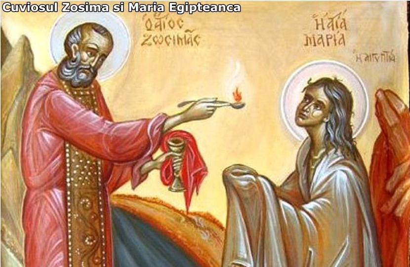 Cu lacrimi, în faţa icoanei Maicii Domnului promite că va lepăda pe «omul cel vechi cuprins de poftele înşelăciunii» şi va lua Crucea, ca toată viaţa să-L slujească pe Domnul Iisus Hristos. O vede pe Fecioara Sfântă care o binecuvântează, îngăduindu-i să sărute Lemnul Crucii pe care a fost răstignit Fiul ei. Avea doar 20 de ani când a lăsat plăcerile lumii şi a făcut pocăinţă în pustiul Iordanului, unde a înfrânt arşiţa, fiarele, păcatul şi duhurile patimilor drăceşti, prin asprimea postului şi multă rugăciune. Aici, de pe malurile Iordanului este zărită de călugărul Zosima, adus de Dumnezeu ca să o Împărtăşească. Ce Taină, Doamne, că minunate sunt lucrurile Tale! Privind cum se depărtează, neatingând pământul, bătrânul cu ochii înlăcrimaţi i-a promis că peste un an de zile va veni în acelaşi loc. Amândoi şi-au ţinut promisiunea. Trupul Sfintei aştepta prohodirea preotului care sosise, şi un leu l-a ajutat să-i pregătească mormânt în nisip, cu Moaşte pentru Veşnicie. Întors la chilia sa din Mânăstirea «Sf. Ioan Botezătorul», cuviosul Zosima a povestit acum 1500 de ani cuprinsul acestei vieţi sfinte! Ea a împlinit şi lucrul despre care vorbeşte Sfântul Prooroc Iezechiel: ,,Vă veţi aduce aminte acolo de căile voastre, întru care v-ati pângărit, şi veţi bate feţele voastre pentru toate răutăţile voastre” (Iez. 20, 43). Şi s-au împlinit asupra ei cuvintele lui Dumnezeu, şi a aflat de milostivirea Lui nesfârşită, despre sfinţenia Lui nemărginită, când Domnul a făcut cu ea, nu după faptele ei, ci după mila Sa, pentru sfânt numele Său. Iată cum e adevărata pocăinţă, iată cum trebuie să se poarte toţi cei împovăraţi de păcate grele: să se întoarcă într-o clipă, din toată inima, la Dumnezeu, să se lepede total de viaţa lor dinainte, să se lepede chiar de ei înşişi, să părăsească fără amânare toate păcatele dinainte şi să se pocăiască toată viaţa, cum s-a pocăit Sfânta Maria Egipteanca. Vedem, aşadar, ce adâncime nemăsurată a avut pocăinţa ei, în ce măsură fără seamăn a avut conştiinţa propriei nevrednicii, cât de uimitoare a fost puterea voinţei ei în lupta cu patimile, cât de mult timp a petrecut în sfânta pocăinţă şi în postire. Nu ştim cu ce s-a hrănit cuvioasa Maria în viaţa din pustie petrecută acolo vreme îndelungată şi după care a ajuns la sfinţenie mare. Ea le-a arătat tuturor celor care merg pe calea răului, pe calea propriilor patimi, o adevărată pildă a felului cum trebuie să o rupă unii oameni cu viaţa lor păcătoasă, a felului în care trebuie să se pocăiască şi să ceară iertare de la Dumnezeul Care ne învaţă cu multă iubire, modul cum putem ieşi din abisurile adânci ale păcatului şi cum putem ajunge la desăvârşirea smereniei şi ascultării faţă de Voia Lui!