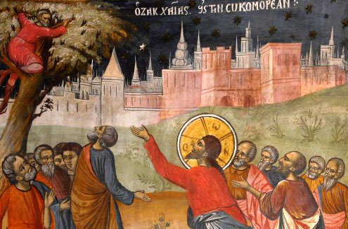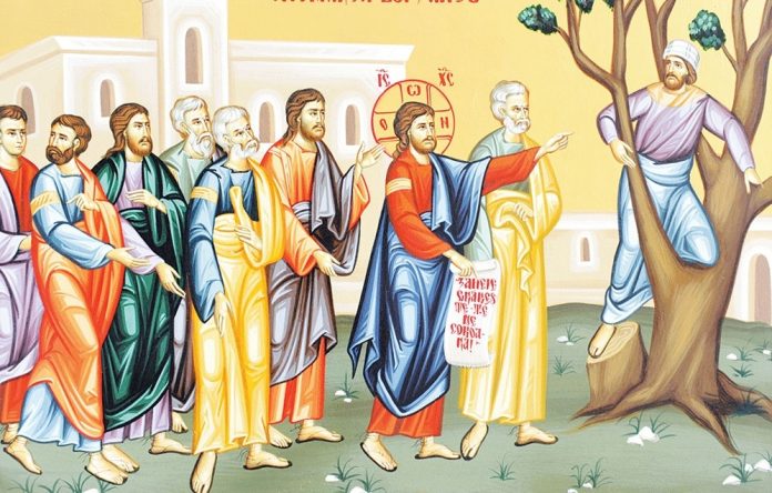 Aşadar, în Duminica a 32-a după Rusalii (a lui Zaheu), suntem la Ierihon, unul dintre oraşele preferate ale Mântuitorului Hristos, pentru că multe întâmplări, multe minuni şi multe drumuri ale Domnului sunt legate de el, un orăşel situat aproape de graniţa cu Iordania de astăzi şi care beneficiază de o poziţie în acelaşi timp privilegiată şi blestemată, această din urmă precizare însemnând că se află la câteva sute de metri sub nivelul mării, astfel încât, coborând de la Ierusalim spre Ierihon, întotdeauna, ţi se pare că intri dintr-o dată într-un cuptor foarte cald, cu toate că pe lângă oraş trece Iordanul cu apă dulce, care izvoreşte de la poalele muntelui Hermon, curge prin Marea Galileii şi se varsă în Marea Moartă, cu apă sărată. Este poate una dintre ciudăţeniile locului, pentru că mai are acest Ierihon, în partea de nord, un izvor de apă rece, apă bună de băut, fiind situat la sud de unul din locurile importante din viaţa Mântuitorului Hristos, Care de multe ori trecea pe acolo, mai ales că de această dată, e posibil să fi venit din Galileea, în jos pe Iordan, de unde urca la Ierusalimul care era, din punct de vedere spiritual-religios, locul înalt prin excelenţă! Astfel drumul spre Ierusalim, prin Ierihon era folosit în mod obişniut de iudeii din Galileea, deşi era un drum ocolit. Ca de obicei, Domnul era înconjurat de mulţimea care voia să audă cuvântul Său, să prindă vreo învăţătură mai deosebită, să vadă vreo minune, pentru că toţi cei care-L urmau erau obişnuiţi şi aşteptau să se petreacă mereu câte ceva deosebit pe parcursul drumurilor Sale, iar, pe un astfel de drum, după vindecarea orbului, mulţi voiau să se atingă de Iisus, mulţi voiau să-I pună întrebări! În aceste condiţii, vorbim despre acest Zaheu, de profesiune vameş, adică agent fiscal, unul care încasa dările pe pământuri, pe case, pe produse, pe circulaţia mărfurilor. Sf. Ev. Luca ne spune că acest Zaheu era mic de statură, şi văzând că vin mulţimile cu Iisus în frunte, imediat şi-a dat seama că-L va putea vedea cu mare dificultate, de aceea, s-a urcat într-un sicomor, vrând să-L vadă pe Iisus mai bine. În acest fel, se pare că L-a văzut şi Mântuitorul pe dânsul, după cum ne relatează Sf. Ev. Luca: «În vremea aceea trecea Iisus prin Ierihon și, iată, un om bogat cu numele Zaheu, care era mai mare peste vameși, căuta să vadă cine este Iisus, dar nu putea de mulțime, pentru că era mic de statură. Și alergând el înainte, s-a suit într-un sicomor ca să-L vadă, căci pe acolo avea să treacă. Și când a sosit la locul acela, Iisus, privind în sus, a zis către el: Zahee, coboară-te degrabă, căci astăzi trebuie să rămân în casa ta. Și a coborât degrabă și L-a primit, bucurându-se. Și, văzând, toți murmurau, zicând că a intrat să găzduiască la un om păcătos. Iar Zaheu, stând înaintea Domnului, I-a zis: Iată, jumătate din averea mea, Doamne, o dau săracilor și, dacă am nedreptățit pe cineva cu ceva, întorc împătrit. Și a zis către el Iisus: Astăzi s-a făcut mântuire casei acesteia, pentru că și acesta este fiu al lui Avraam. Căci Fiul Omului a venit să caute și să mântuiască pe cel pierdut». (Luca 19, 1 10). Acelaşi Sf. Ev. Luca ne întăreşte spusele sale prin cuvintele: «Şi intrând, trecea prin Ierihon. Şi iată un bărbat, cu numele Zaheu şi acesta era mai-marele vameşilor şi era bogat. Şi căuta să vadă cine este Iisus, dar nu putea de mulţime, pentru că era mic de statură. Şi alergând el înainte, s-a suit într-un sicomor, ca să-L vadă, căci pe acolo avea să treacă. Şi când a sosit la locul acela, Iisus, privind în sus, a zis către el: Zahee, coboară-te degrabă, căci astăzi în casa ta trebuie să rămân. Şi a coborât în grabă şi L-a primit, bucurându-se. Şi văzând, toţi murmurau, zicând că a intrat să găzduiască la un ora păcătos. Iar Zaheu, stând, a zis către Domnul: Iată jumătate din avera mea, Doamne, o dau săracilor şi dacă am năpăstuit pe cineva cu ceva, întorc împătrit. Şi a zis către Iisus: Astăzi s-a făcut mântuire casei acesteia, căci şi acesta este fiu al lui Avraam. Căci Fiul Omului a venit să caute şi să mântuiască pe cel pierdut» (Luca 19, 1-10), ceea ce demonstrează întotdeauna că fiindcă Dumnezeu ne iubeşte, pentru că ne îndeamnă să-L întâmpinăm cu credinţă, să urcăm cu smerenie în «sicomorul» căinţei şi al îndreptării!