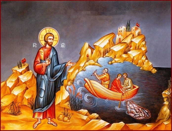 Aşa se întâmplă şi în textul Pericopei Evanghelice, deoarece Domnul este pe malul lacului Ghenizaret, iar mulţimea se aduna în jurul Său ca să asculte Cuvântul Lui Dumnezeu! Acesta este momentul în care Iisus Hristos îi «pescuieşte» pe primii Săi patru ucenici, lucru care confirmă cu pregnanţă subtilitatea «pedagogiei» divine, care se derulează prin trei aspecte esenţiale: primul aspect este acela când Mântuitorul zăreşte pe malul lacului două bărci de pescari, al căror iscusit şi mai mare pescar este Simon, cel ce avea să fie Sf. Ap. Petru, ceea ce înseamnă că evidenţierea primului aspect are un caracter puternic simbolic, deoarece Domnul Se urcă în barca lui Simon şi îi cere să se depărteze puţin de mal pentru ca toţi oamenii veniţi ca să-L asculte, să-L poată vedea şi auzi, motiv pentru care Iisus Hristos aşezat în barcă începe să predice, barca fiind imaginea însăşi a Bisericii, pentru că pluteşte pe apele zbuciumate ale lumii decăzute, fără să se scufunde, şi pentru că poartă pe Hristos în Altarul său! Prin urmare, Biserica învaţă neamurile, omenirea, iar Domnul Hristos este mereu prezent în barca Bisericii Sale, fiind Cârmaciul ei, până la sfârşitul veacurilor! Această barcă nu va pieri niciodată, după cum profeţeşte Însuşi Domnul, pentru că nici ,,porţile iadului nu o vor înfrânge”, cu precizarea că şi cei patru viitori Apostoli sunt martori ai acestei scene, pentru că ei văd momentul şi aud cuvintele prin care Domnul le arată mai întâi de ce a venit în lume şi la ce misiune sunt şi ei chemaţi. Cel de-al doilea aspect menţionat în Pericopă este pescuirea minunată însăşi, pentru că în aceeaşi notă a «pedagogiei» divine vedem cu ochii minţii noastre cum ştie Domnul să se poarte cu oamenii din popor, cei care trudesc cu propriile braţe, care sunt la opusul protipendadei religioase, alcătuită din scribi şi farisei de toate felurile, pentru că dincolo de toţi aceştia, numai Dumnezeu ne ocroteşte şi ne cheamă din înaltul cerului şi din adâncuri, ca să pătrundem tainele cerești, să înțelegem lucrarea mântuirii noastre, când lumea se va sfârși! Cu tact şi cu multă înţelepciune, Domnul nu le ţine apostolilor un mare discurs teologic şi nu se arată nemijlocit ca fiind Mesia, ci îi pune pe aceştia să facă ceva concret, să împlinească un act simbolic ce ţine de meseria lor şi care vorbeşte inimii lor. De aceea, Domnul le spune să meargă în apă adâncă şi să arunce mrejele pentru pescuit, iar Simon ascultă îndemnul, deşi toată noaptea lucraseră fără să prindă vreun peşte! De fapt, aceasta e imaginea lui Simon, care ascultă de Hristos, Îl crede pe cuvânt, iar Simon Petru are o atitudine admirabilă, pentru că se umple de frica Lui Dumnezeu şi zice: «depărtează-Te de la Mine, că sunt om păcătos», lucru care ne-ar face să credem că el Îl respinge pe Dumnezeu, ceea ce nu este adevărat, pentru că Sf. Ap. Petru are revelaţia dumnezeirii, i se descoperă Însuşi Dumnezeu şi instantaneu are şi revelaţia sinelui. Poate că ne punem întrebarea, ce i-a determinat pe aceşti oameni să-şi părăseasca ocupația, familiile lor, şi să-L urmeze pe Domnul Iisus? Hotărârea lor de a-L urma pe Iisus este nepătrunsa şi nebiruita putere a dumnezeiescului har, este pilda vieţii Sale curate şi sfinte, virtutea smereniei Domnului! În istorie, mulţi au propovăduit învăţături înalte pe care ei nu le-au urmat, pe când Mântuitorul Iisus Hristos a împlinit tot ceea ce a învăţat, iar, asemenea pescarilor din Evanghelie, pilda vieţii neprihănite a Mântuitorului stă ca o carte deschisă în faţa noastră, El fiind o lumină pentru noi, după nopţi lungi de pescuit în deşertul oarbei necredinţe! Pentru smerenia lui Simon şi a celorlalţi pescari, harul lui Dumnezeu a coborât peste ei şi au devenit pescari de oameni, apostoli ai neamurilor! De fapt, sunt multe elemente ecleziologice de subliniat, pentru că Simon nu este singur, ci are un frate, Andrei, care nu este amintit aici, precum şi cei doi asociaţi, pe fraţii Iacob şi Ioan, deci e vorba despre patru apostoli, de două ori doi fraţi, o suită apostolică pe care Domnul o va avea la inimă şi care va fi martora celor mai mari lucrări ale Sale! În final, peştele prins este atât de mult încât e nevoie de cele două bărci şi de eforturile celor patru pentru a-l aduce, deci Biserica nu este încredinţată unui singur om, ci unei comunităţi de oameni, cei doisprezece apostoli fiind oglindirea Dumnezeieştii Treimi (după cum spune Însuşi Domnul («doi sau trei adunaţi în numele Meu»), iar numai Sf. Ap. Petru a fost cel care a vorbit, pentru că Domnul i S-a adresat lui, ca mai marele pescarilor, dar întâmplarea îi priveşte pe toţi, pentru că toţi au auzit cuvântul Domnului, toţi iau parte la pescuirea minunată! Cel de-al treilea aspect la care ne putem referi şi care decurge din celelalte două priveşte concluzia lor logică, deoarece, după ce le-a arătat pentru ce a venit în lume, după ce le-a arătat natura Sa dumnezeiască, Domnul îi cheamă să-L urmeze, folosind o expresie suprinzătoare, singura care putea vorbi inimilor lor: ,,de acum veţi fi pescari de oameni”, veţi scoate din adâncurile lumii decăzute pe oamenii supuşi morţii pandemice sau de altă natură! Poate că aceasta este statura lui Simon-Petru şi a celorlalţi Apostoli, deoarece Iisus Hristos îi cheamă la pescuire, deci la propovăduire, iar ei ascultă chemarea Domnului! Apostolii nu au făcut, desigur, studii, dar au ceva mai preţios care înseamnă simplitatea inimii, deoarece ei Îl cred pe Dumnezeu pe cuvânt, au simţul concretului, al vieţii, adică bunul simţ, aşa cum au de obicei meşteşugarii şi ţăranii, pe când cei cu carte sunt adesea ademeniţi de abstracţiuni şi de speculaţii mai mult sau mai puţin fi