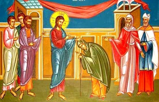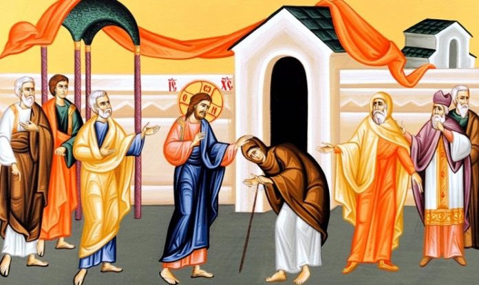 Această Pericopă Evanghelică a Duminicii a 27-a după Rusalii, ne oferă textul următor: «În vremea aceea Iisus învăța într-una din sinagogi sâmbăta. Și, iată, era acolo o femeie care avea de optsprezece ani un duh de neputință și care era gârbovă, încât nu putea să se ridice nicidecum. Iar Iisus, văzând-o, a chemat-o și i-a zis: Femeie, ești dezlegată de neputința ta! Și Și-a pus mâinile asupra ei, iar ea îndată s-a îndreptat și slăvea pe Dumnezeu. Atunci, mai-marele sinagogii, mâniindu-se că Iisus a vindecat-o sâmbăta, răspunzând, zicea mulțimii: Șase zile sunt în care trebuie să se lucreze; deci veniți în aceste zile și vă vindecați, iar nu în ziua sâmbetei! Domnul însă i-a răspuns și a zis: Fățarnicilor! Fiecare dintre voi nu dezleagă, oare, sâmbăta boul sau asinul său de la iesle și nu îl duce să-l adape? Dar aceasta, fiică a lui Avraam fiind, pe care a legat-o Satana, iată, de optsprezece ani, nu se cuvenea, oare, să fie dezlegată de legătura aceasta în ziua sâmbetei? Și, zicând El acestea, s-au rușinat toți cei ce erau împotriva Lui, iar poporul întreg se bucura de toate faptele cele slăvite, săvârșite de Dânsul» (Luca 13, 10-17), pentru a ne transmite un mesaj grăitor şi nouă, celor care, în zi de Duminică, trebuie să împlinim iubirea milostivă a lui Dumnezeu, fiind alături de cei bolnavi, hrănind pe cei flămânzi, îndreptând pe cei rătăciți. Fariseii, cu buzele rosteau cuvintele din Lege, dar cu inima urau pe Cel care săvârșise minunea. Erau fățarnici pentru că și ei încălcau Legea, făceau bine animalelor și nu considerau că e o încălcare a Legii, însă considerau un păcat ajutorarea unei ființe umane. De fapt, râvna afișată pentru a arăta respectarea Legii era un pretext, prin care își justificau ura față de Învățător, pentru că prin aceasta se condamna o confuzie ce domina mentalitatea iudaică despre Sabat, ca respectare a Legii în litera ei și independent de implicarea omului, or, aceasta era o lege dată de Dumnezeu pentru om, un cod după care să se conducă, nu care să-l subjuge. Printr-o asemenea explicație Iisus Hristos vrea să-i elibereze și pe învățătorii de lege de sub jugul unei Legi oarecum rigide şi limitative, de înrobirea literei ei. Totodată, Domnul caută să reabiliteze demnitatea omului, superior făpturii și partener de dialog cu Dumnezeu. Nici Legea și nici făptura nu sunt superioare omului, ci cadrul în care, ocrotit de Dumnezeu, omul poate fi ferit de dezrădăcinare și condus spre ceea ce a fost dintru început. Desigur, nu numai că nu este păcat să săvârșim fapte de milostenie în zi de sărbătoare, ci, chiar ni se cere, aceasta fiind o virtute, pentru că Hristos Domnul a săvârșit nenumărate fapte bune, vindecări, minuni în zi de sâmbătă, iar El a făcut acestea nu pentru a încălca Legea, ci pentru a le spune iudeilor de atunci şi nouă celor de azi, că ziua de sărbătoare e un prilej extraordinar pentru milostenie, pe de o parte, pentru că nu există o zi în calendar specială sau zile anume în care se fac fapte bune, iar, pe de altă parte, chiar viața întreagă trebuie să fie în sine un prilej minunat pentru a face binele dincolo de semnificația zilelor din calendar. În esenţă, fapta bună săvârșită unui om în suferință este ea însăși o sărbătoare, pentru că acea zi a fost binecuvântată cu prezența lui Dumnezeu în viața noastră, aşa cum femeia gârbovă este vindecată fără a cere explicit acest lucru. Vedem că în sinagogă, femeia gârbovă se întâlnește cu Iisus, Căruia nu îndrăznește să-I ceară nimic, deși în inima ei se ruga și atât de mult și-ar fi dorit vindecarea. Or, tocmai această credință, văzând-o Hristos Domnul, a chemat-o la Sine și, punându-și mâinile peste ea, a vindecat-o, mai ales că răbdarea ei deosebită și suferința fără răzvrătire îndurată timp de 18 ani i-au călit viața și au făcut-o să-și înțeleagă suferinţa, să o accepte ca pe o cruce în viața ei, ca pe un semn văzut al smeririi ființei ei firave. Mai vedem că femeia era bolnavă de 18 ani și totuși venea la sinagogă, deci, ea nu încetase să spere, nu se descurajase, nu-și pierduse credința, nu încercase să se convertească la alte credințe ci, cu multă răbdare și speranță, continua să meargă la sinagogă şi nu cerea ceva, pentru că era smerită! Aşadar, motivația vindecării ei de către Hristos Domnul rezultă din faptul că Mântuitorul vindecă pe această femeie pentru că neputința sa, această suferinţă fizică, nu era consecința vieții păcătoase trăite de ea sau a păcatelor moștenite genetic de la părinți și nici rezultatul firesc al unei vieți consumate irațional în slujba unei munci istovitoare, așa cum credeau cei care o condamnau. Domnul o vindecă știind că era posedată de diavol şi legată de 18 ani, înrobită și condamnată să nu poată vedea chipul oamenilor cu care se întâlnea și în acelaşi timp era disprețuită pentru boala ei de mentalitatea prizonieră a confraților care o așezaseră în aceeași categorie cu orbii, leproșii, paralizații şi alte persoane cu probleme grave! Domnul a vindecat-o pentru a arăta că infirmitatea fizică nu este o piedică în calea întâlnirii cu Dumnezeu Care privește în sufletul omului și pentru a ne atenționa că în timp ce infirmitatea fizică este temporară, ea nefiind o piedică pentru cei care doresc intrarea în Împărăția lui Dumnezeu, infirmitatea spirituală, născută din înstrăinarea de Dumnezeu, poate fi un handicap care să ne împiedice intrarea în Împărăția cerului, pentru că Dumnezeu vine în viața noastră, ori de câte ori schimbăm traumele unei existenţe cotidiene precare cu clipa de har, fiindcă El cunoaște inimile, gândurile şi taina sufletului!